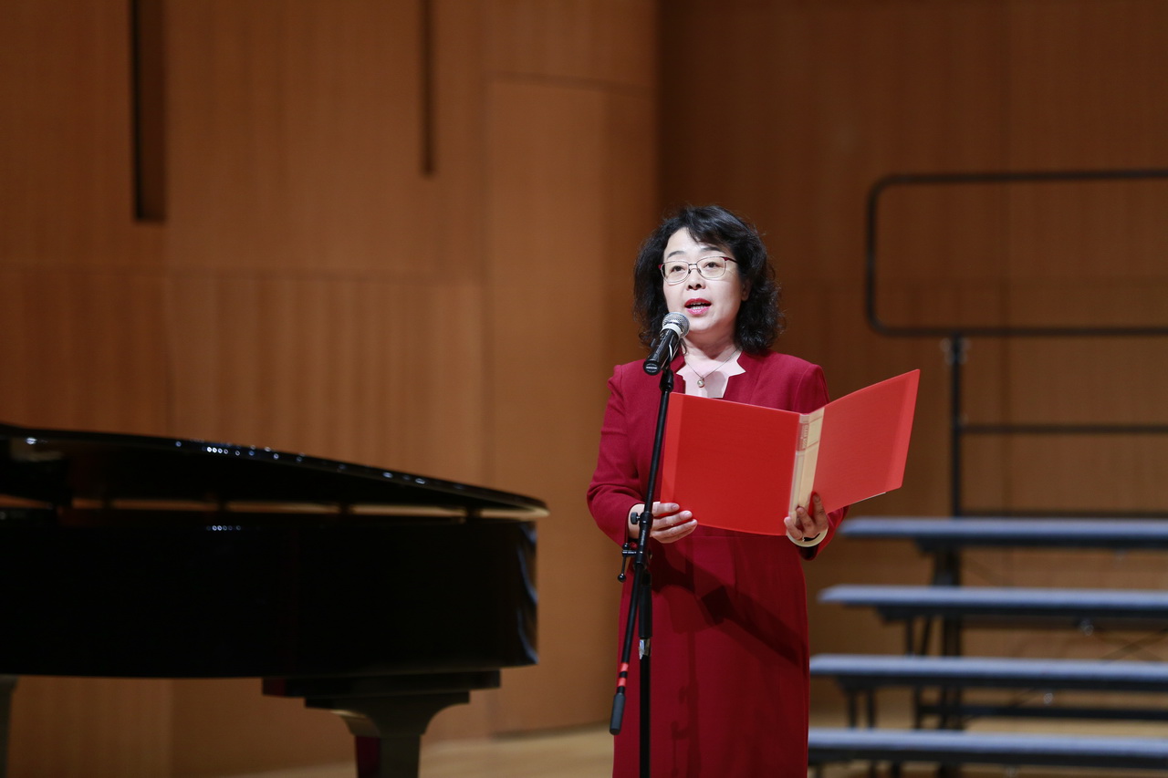 在音乐会的最后环节,《菊花台》的歌声响起,屏幕上闪过一张张即将毕业离开合唱团的团员照片。领导们上台为这些团员颁发艺术团纪念玩偶,将“传承”这一主题展现的淋漓尽致,将对孩子们的不舍,对孩子们的期望化作了每一个真诚的拥抱。正是由于每一个合唱团员的努力,才能够成就今天的和一合唱团。“明年再有新生者,十丈龙孙绕凤池”,我们相信,未来的和一合唱团将会以更优异的成绩证明自己。不忘初心,继续前行!