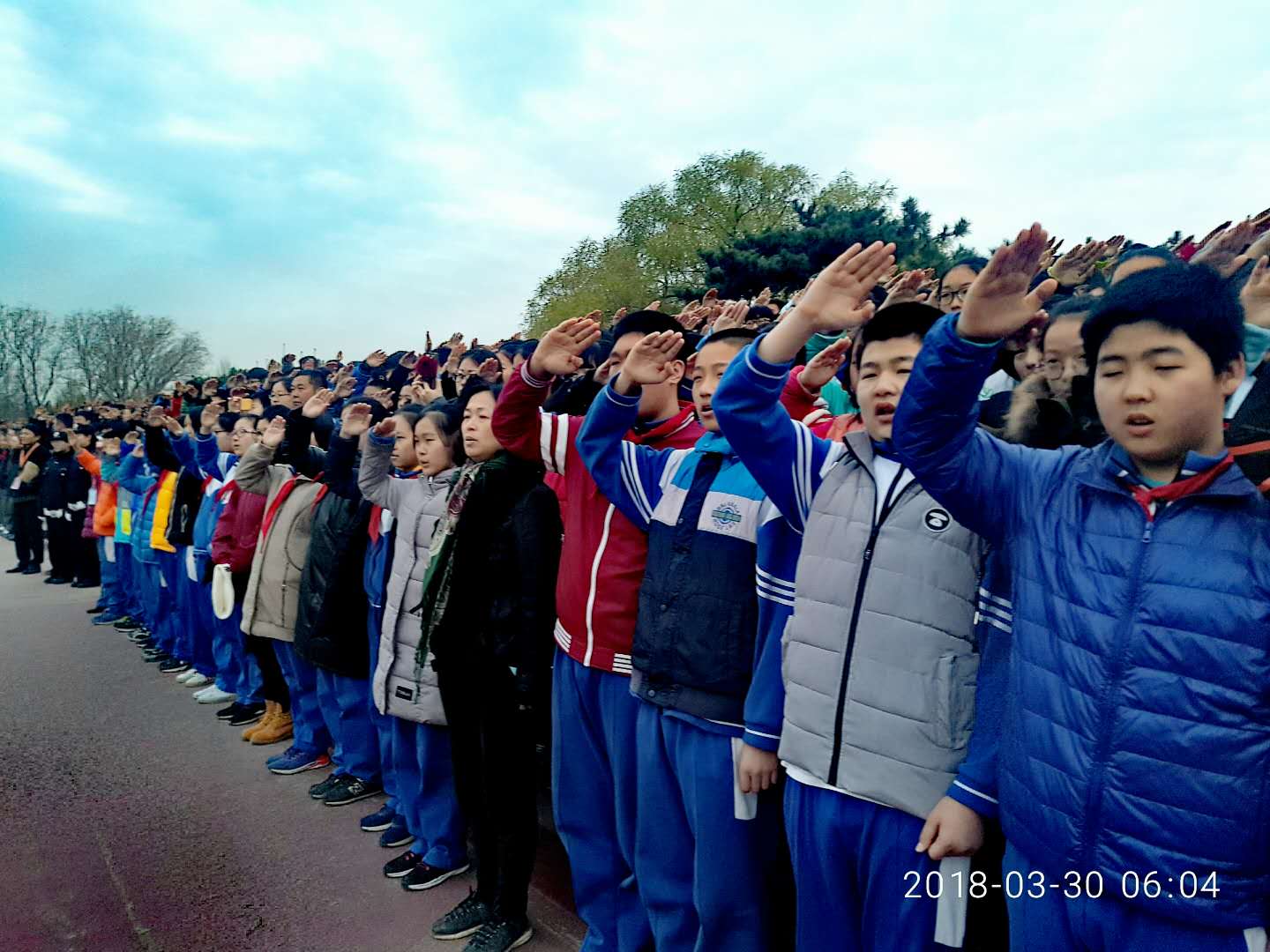 为深入贯彻落实《北京市中小学培育和践行社会主义核心价值观实施意见》文件精神,践行北京市中小学生“四个一”活动,按照市、区教委统一部署,2018年3月30日,和平街一中朝来校区组织初一年级学生参加了天安门广场升旗仪式。