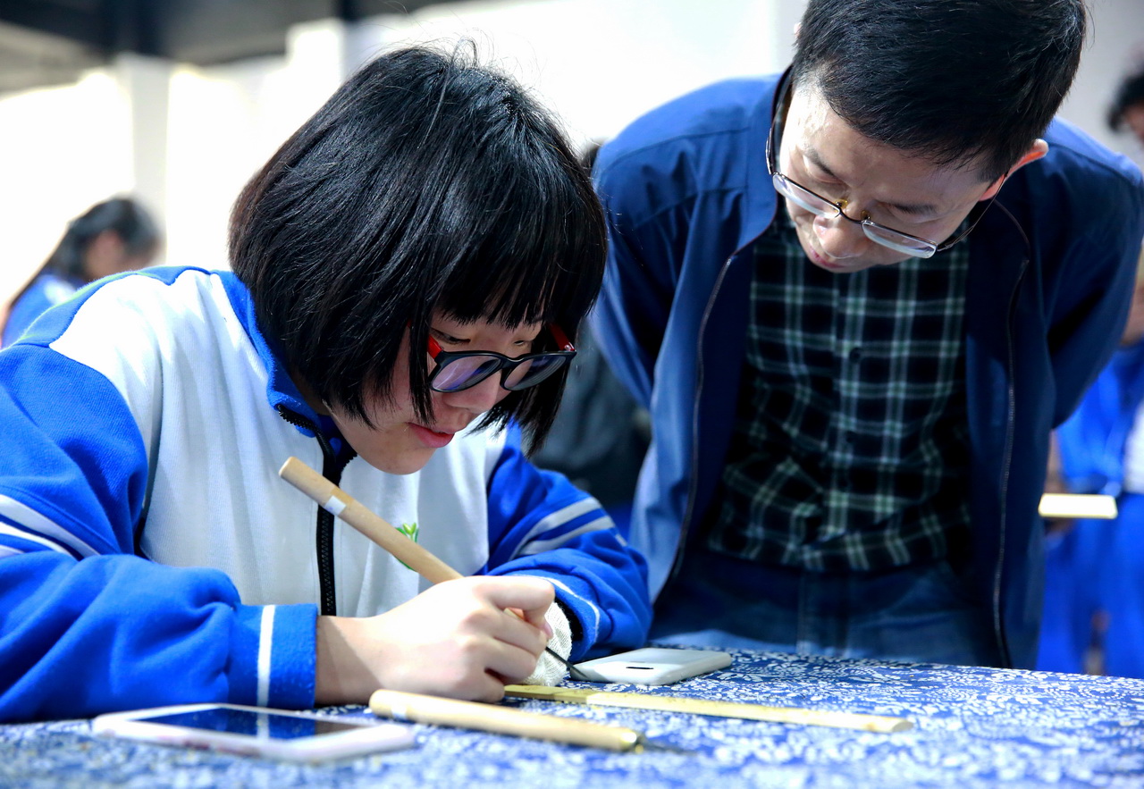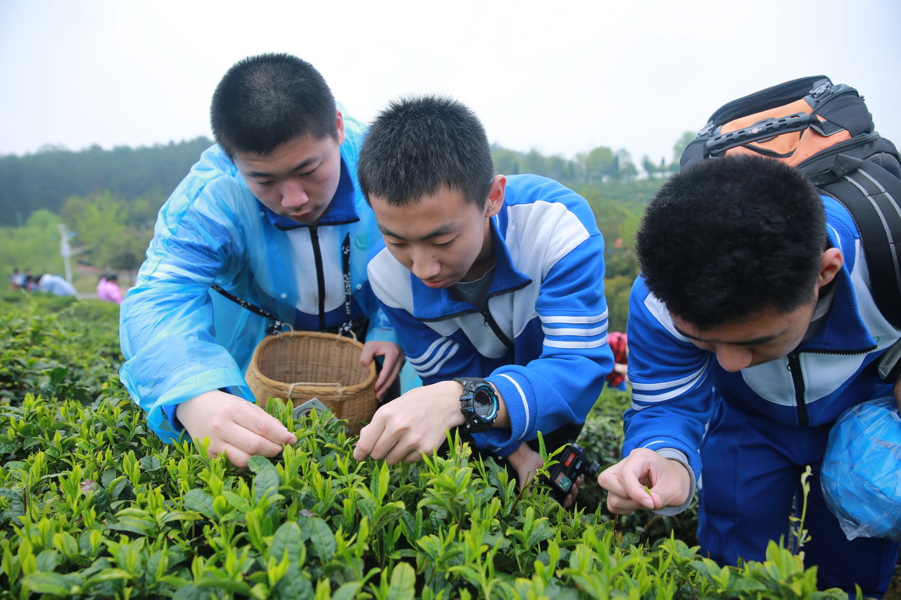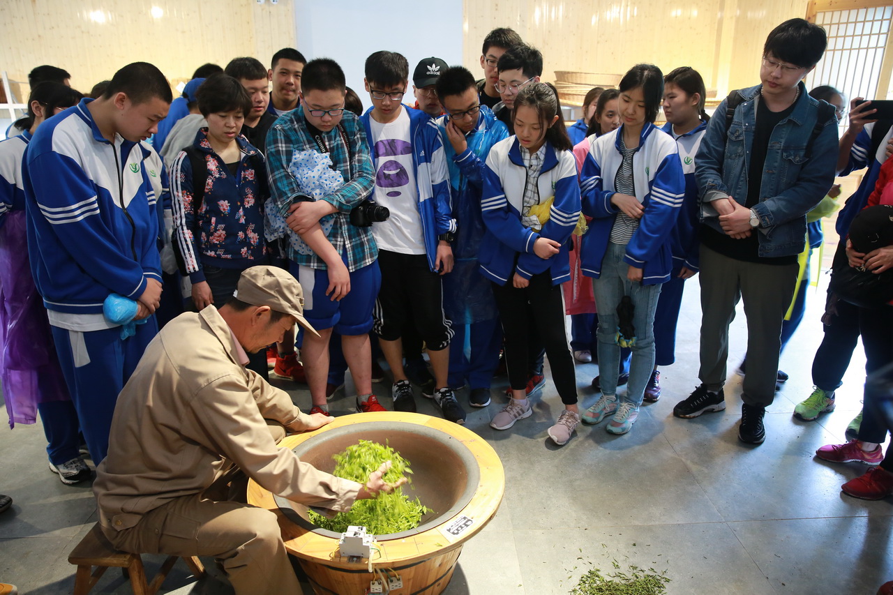 除了看和听,此次学生更多地进行了做的体验。在徽雕博物馆,同学们尝试了戒尺的雕刻,感受徽州匠人的耐心、细心和对美的执着;在谢裕大茶行,学生们亲自采摘茶叶,体验了炒茶、揉茶、晒茶的工艺,学习了敬茶的礼仪;在胡开文老字号墨厂,学生进行了徽墨的制作,学习了用徽墨点字描图;在徽州古城,学生学习了剪纸,体验了黄梅戏的唱段。此外学生还尝试了自己制作包袱饺、烧饼等安徽美食。对徽州文化有了全方位的、立体的了解和感受。