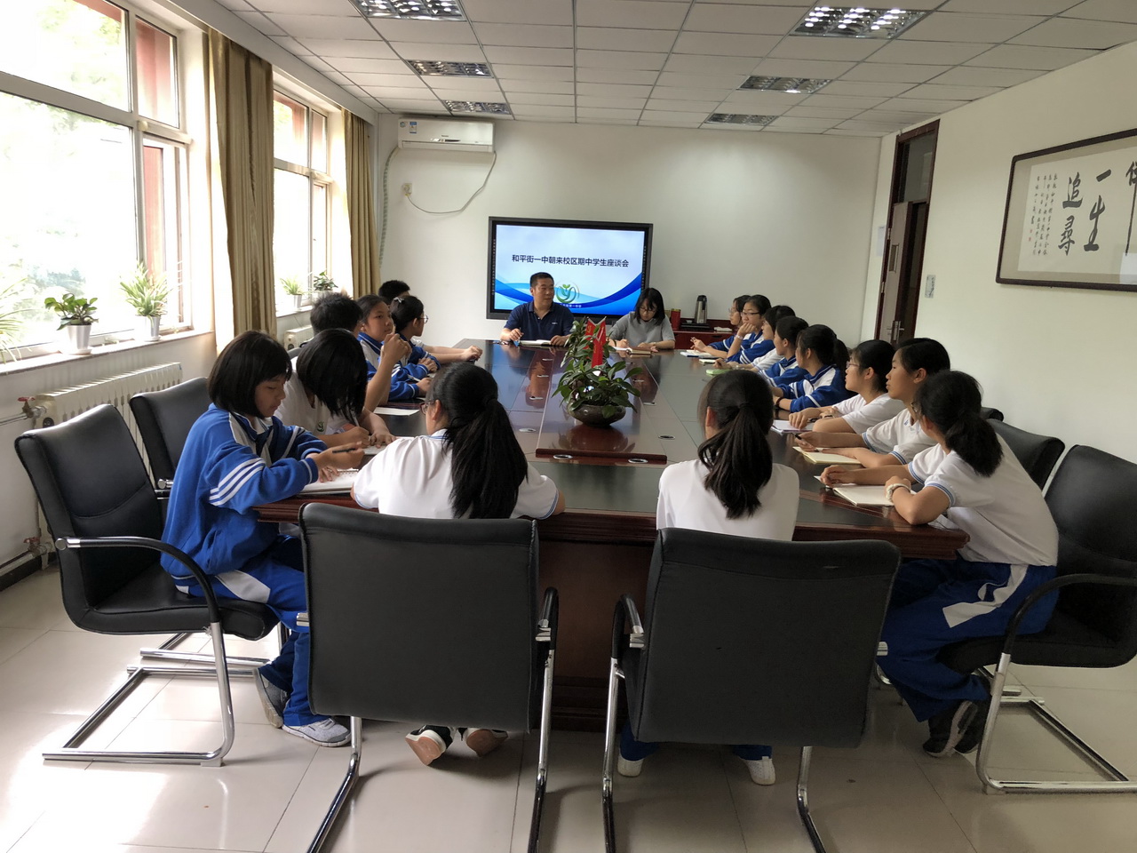 为了深入地了解学校的教育教学状况,听取学生意见,明确学生需求,不断提升校区办学水平,2018年5月15、16日,和平街一中朝来校区召开了期中学生座谈会。座谈会由学生发展处组织,邀请了初一和初二年级各班的班长、学习委员和生活委员参加。会上,学生发展处张东辉主任和韩晓佳主任鼓励同学积极客观地提出学校在各个方面存在的问题,并表示将如实地把学生们提出的存在的问题反馈给学校相关部门,积极落实整改。