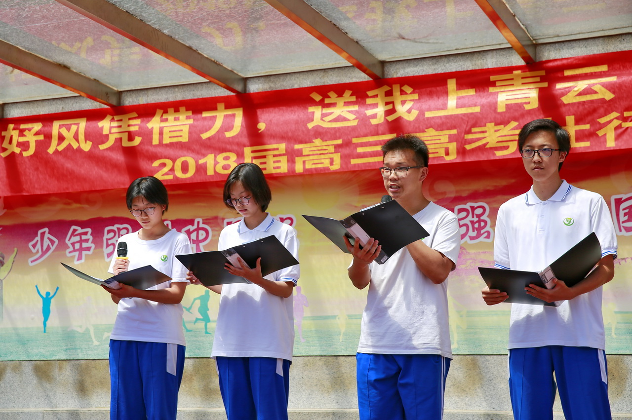 在高三学生即将奔赴高考考场之际,为助力高考,勉励学生们满怀豪情冲刺高考,祝愿他们在高考中取得令人满意的成绩,2018年6月4日上午课间操时间,和平街一中和平街高中校区、初中校区分别举行了主题为“好风凭借力,送我上青云”的2018届高三年级高考壮行会。学校领导、老师、同学们齐聚操场,为高三学子加油助威。
