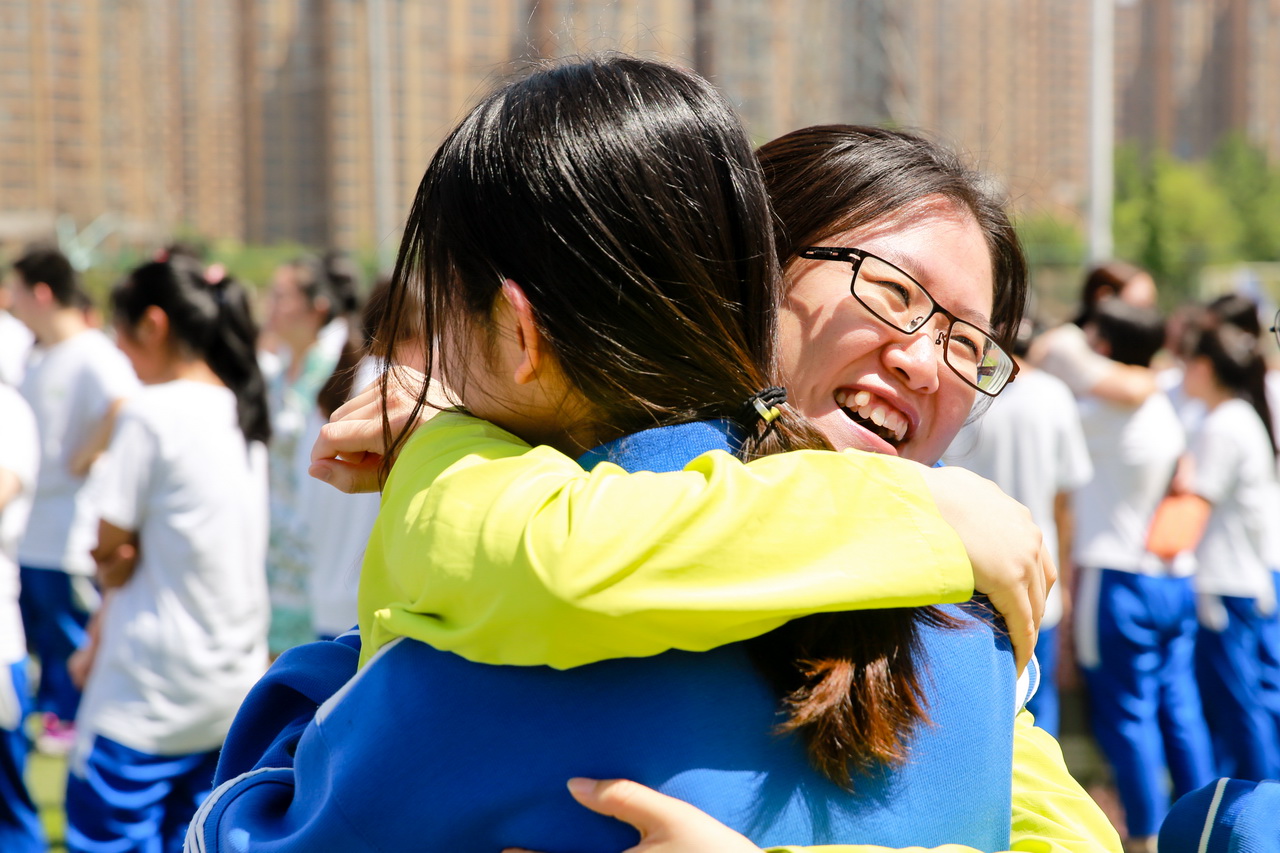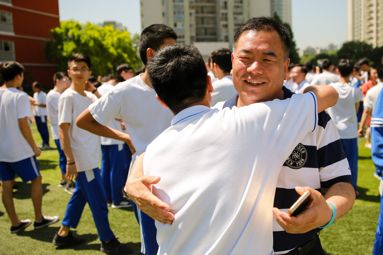 最后,学校全体行政干部、高三教师和高三学子们热情相拥,真情拥抱。那是爱的拥抱,是鼓励的拥抱,也是幸运的拥抱。此时太阳娇好,阳光明媚,校园绿树葱葱,蝉声鸣鸣。高考,我们来了!