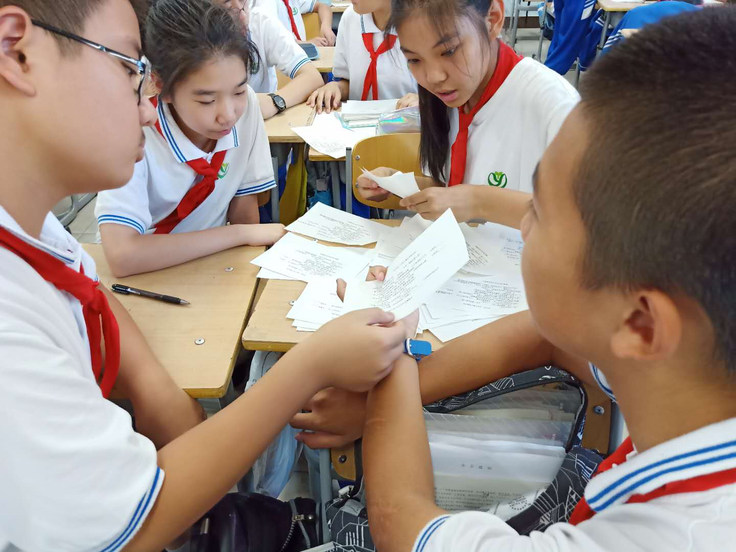 首先,王明霞老师在初一(5)班上了一节课题研究课。课后,王瑞霖教授和老师们一起进行了课题研讨。数学组的课题是“基于问题解决的初中统计概率教学案例的研究”,目的在于培养学生数学思维能力的同时,关注学生自主探究、提出问题、分析问题和解决问题能力的培养。在课题引领下,王明霞老师结合学校6月6日组织的“全国爱眼日”宣传活动,引导学生关注学校学生的视力情况。学生以此问题展开了调查,经历了调查方案的设计,收集数据、整理数据、描述数据、分析数据、得出结论的统计全过程。课堂上采取了小组为单位进行调查研究汇报的形式展开,与传统课型相比有了新的尝试。同学们畅谈自己调研的过程和结果,以及在此过程中感悟到的统计知识和对科学精神的理解。课后老师们谈了自己对问题解决的理解:问题可以是现状的了解,也可以是身边现实的问题;本节课作为一个案例可以继续分析其中学生对统计过程的理解,真实的调查活动中问题的解决办法,对调查数据的处理,以及学生在社会关系构建过程中对社会的理解等。
