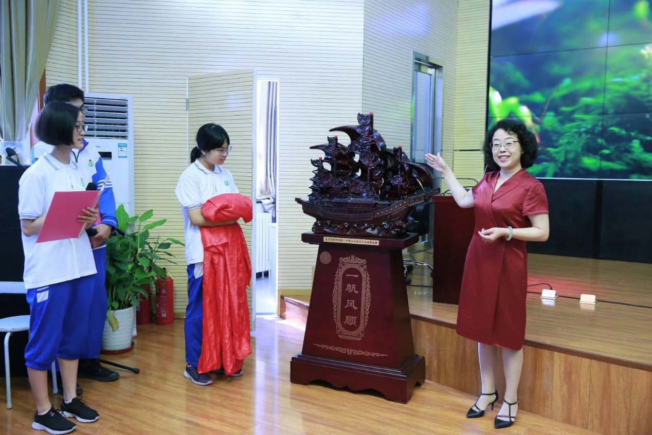 为了表达对母校和恩师的感念之情,初三的学生们为母校精心准备了象征“一帆风顺”的木船纪念品,希望母校能够乘风破浪,不断前进;并向老师们献上寄托着无限感激之情的花束。在鲜花和掌声中,校长向学生代表颁发毕业证书,同学们三年的求学生涯终收获硕果。