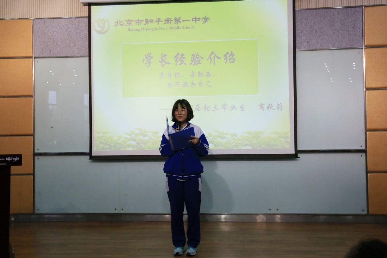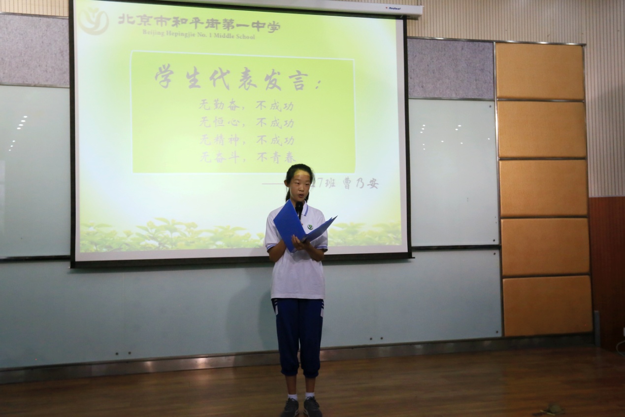 会上,张景鲜校长隆重介绍新一届的初三各科教师,希望这个团结的集体在未来的工作中继续秉承和合一致、和睦同心、和衷共济、和谐发展的和一文化,展现和一教师的风采。王雅芝老师代表全体初三教师总结了学习的锦囊妙计:一实、二巧。学生代表初三7班曹乃安同学代表初三全体同学表达了他们的决心、斗志和担当;2018届学长商秋莉同学分享了她的心得体会——要自信,要勤奋,要不放弃自己,在小伙伴的相互陪伴下共同努力。年级组长郭立华老师劝诫大家以于丹、以身边的同学为榜样,怀揣自己的梦想、铭记老师的期望、带着学长传授的经验,整理好状态向人生的第一个目标进发。