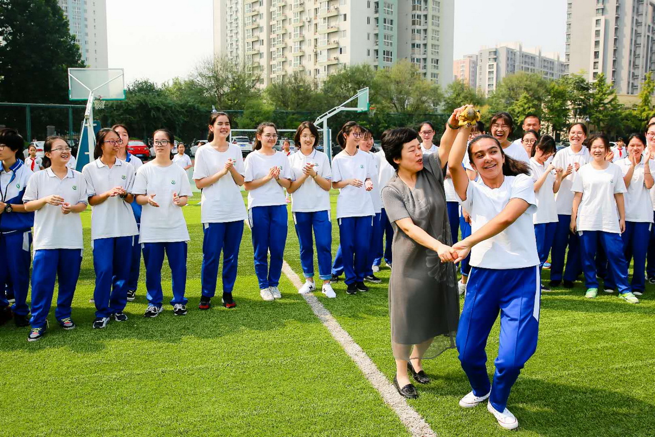 在小学部,能歌善舞小同学们进行了歌舞表演,充满童真童趣的表演获得了经久不息的掌声;之后,孩子们与教师行拥抱礼,拥抱对于孩子来说是表达感恩与敬意,对于教师来说则意味着责任与坚持。朝来校区组织了学生诗朗诵以及吉他合唱等节目为教师们庆贺节日;舞蹈社团的同学们也献上了自己精彩的表演,操场上或才艺展示或游戏互动,处处充满了欢声笑语。在莲葩园校区,全体教职员工进入场地中间,各年级学生围成一个圆,把自己内心深处的感谢,大声的说给在场的老师听,每位老师都收到了一封感谢信;内高班的学生更是与老师们手拉着手跳起了维吾尔族集体舞蹈。在和平街校区初中部,悠扬的古筝民乐伴随着诗朗诵,让人回味无穷。在和平街校区高中部,寻找最美教师的活动如火如荼的开展,学生们在当天用手机与老师们合影、留念,在学生发展处进行打印,让这个教师节成为青春中最珍贵的回忆;黑管独奏《可爱的一朵玫瑰花》也诉说着学生对于教师最真挚的情感。