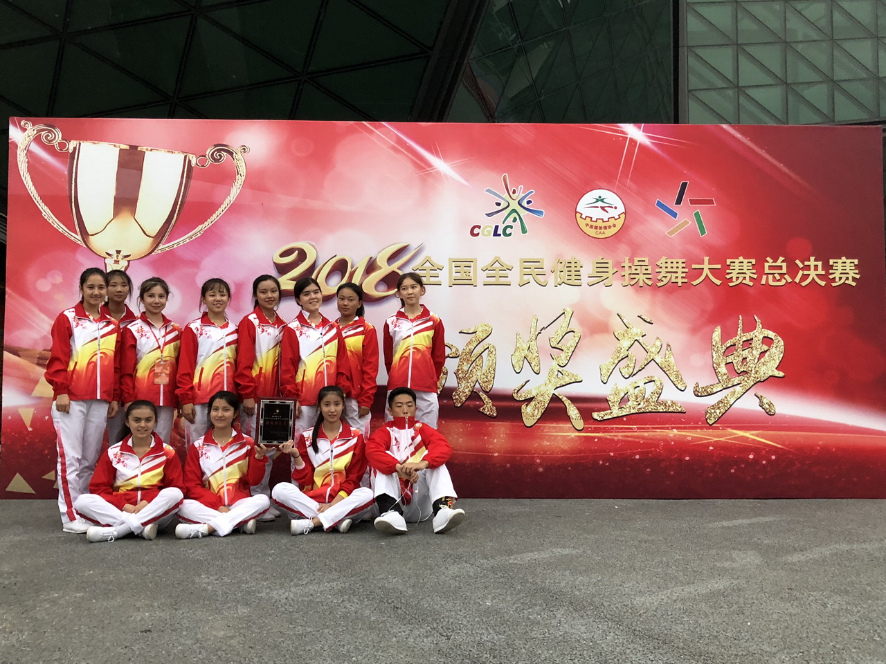 2018年10月23-25日,和平街一中高中健美操队在沙金老师、郑旭老师的带领下,赴深圳参加2018第七届全国全民健身操舞大赛总决赛。在两个项目均是第一个出场的不利条件下,同学们克服困难,以全场最高分获得全民有氧4级第一名特等奖、全民有氧5级一等奖以及最佳团队奖的优异成绩。同时,沙金老师还荣获“优秀教练员”称号。