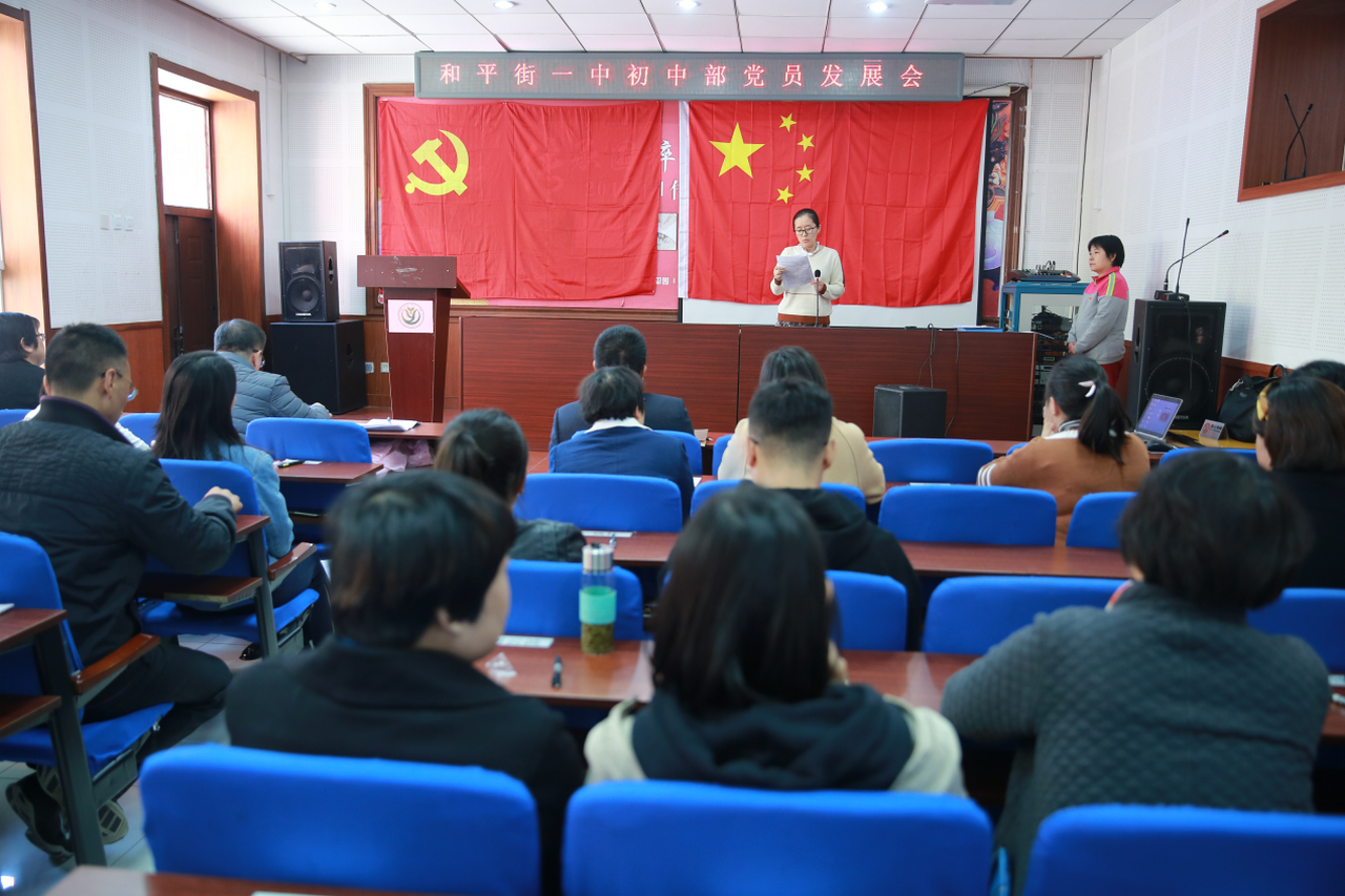 2018年11月1日中午,和平街一中和平街初中校区党支部召开冯海娟同志的预备党员发展会,支部33名党员及2名入党积极分子参加会议。