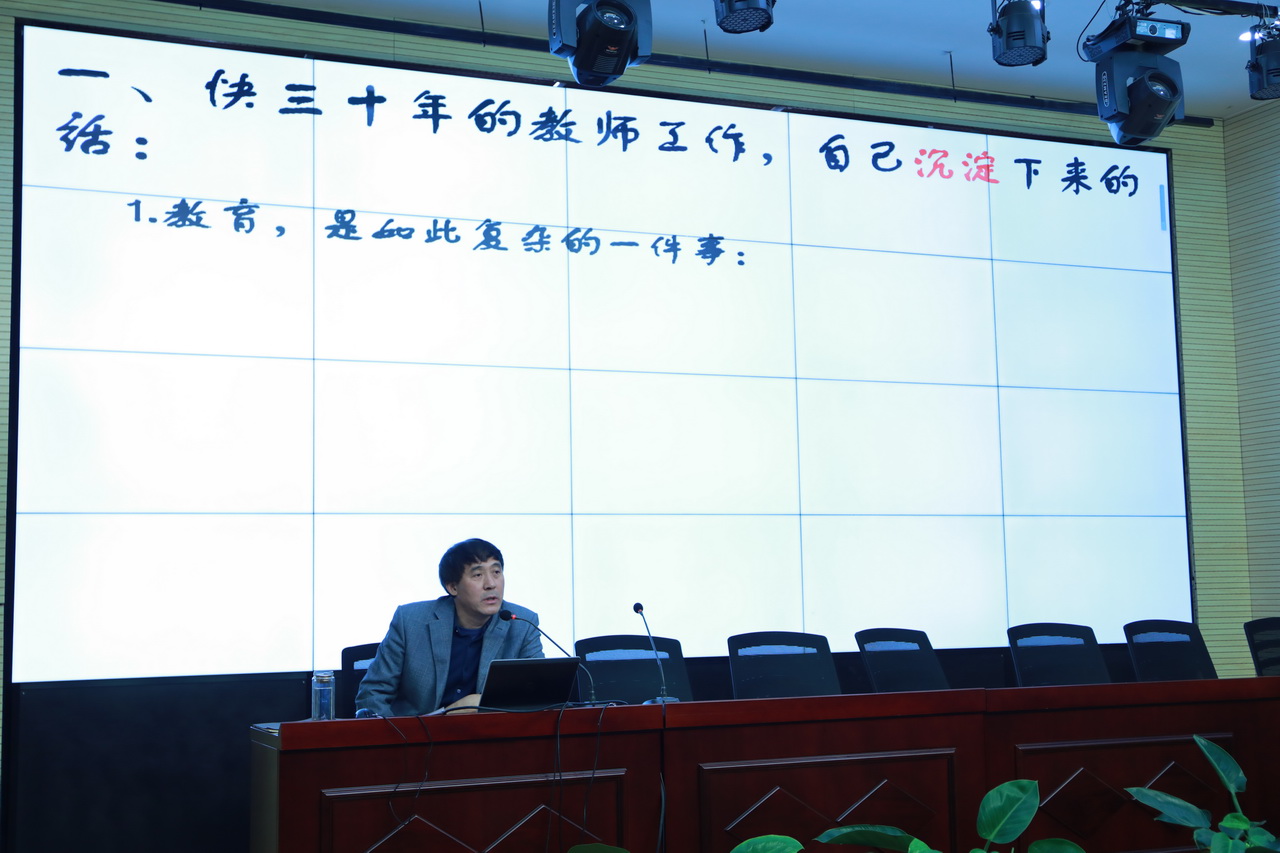 2018年11月13日下午,和平街一中和平街高中校区特级教师大讲堂第二讲如期举行。本次讲座由学校物理特级教师、校区主管副校长曹成勇主讲。校区全体教职工认真聆听了讲座。