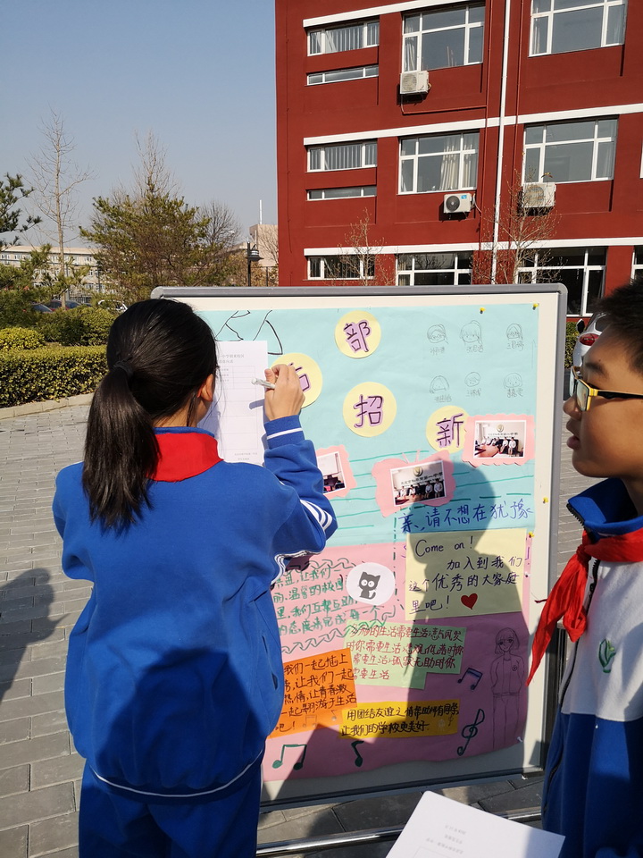 为了这次招新活动,各部提前两周就开始精心设计和制作展板,展板上清晰地列出各部招生要求、招生人数和报名程序。活动现场,各部成员热情地向围观学生介绍本部门情况,耐心细致地对有意向的学生进行问题解答,并发放招新意愿表,报名场面甚是“火爆”。