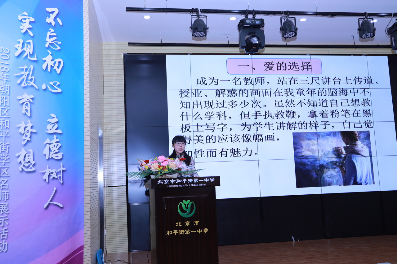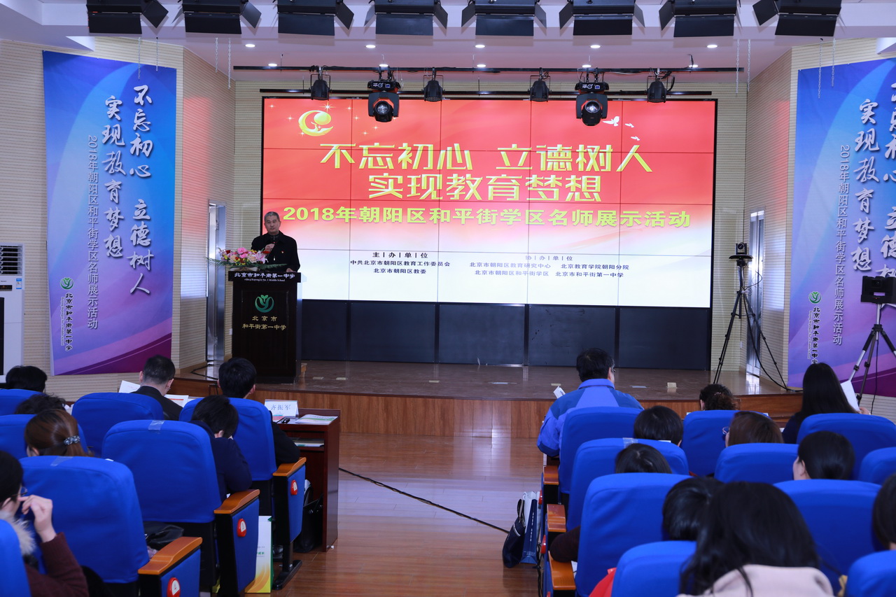 2018年11月16日,2018年朝阳区和平街学区“不忘初心 立德树人 实现教育梦想”名师展示活动在和平街一中和平街高中校区隆重举行。朝阳区教委、和平街学区、北京教育学院、朝阳分院、区教研中心的相关领导和专家出席了活动;学区内11所中小学干部、教师,其他学区干部、教师,外省市干部、教师共270余人参加了活动。活动由和平街一中党总支书记李兵主持。
