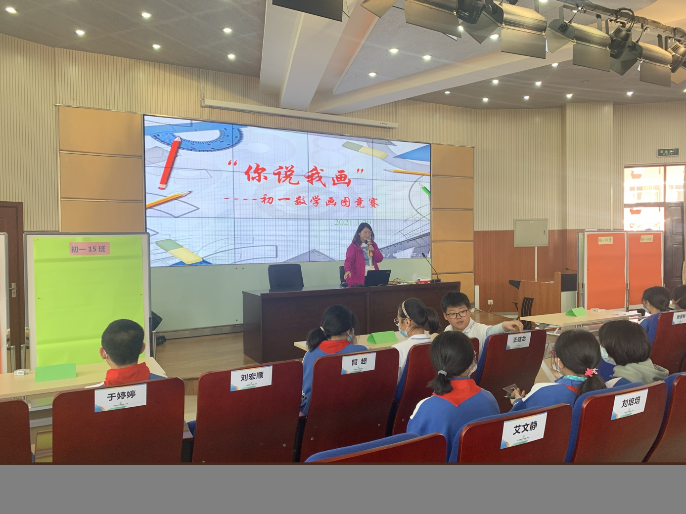 为了进一步激发学生学习数学的兴趣,营造学习数学的良好氛围,在校领导的支持和数学老师们的集思广益之下,我们举办了数学学科月活动。在初中数学的学习中,对几何直观能力的培养是发展数学素养的重要内容,掌握几何作图能力不仅能够强化形象思维,空间想象能力,还能够提高几何问题的解决效率。所以本次初一年级数学学科月的主题定为“你说我画”。本次我们进行了一场班与班之间的画图竞赛,希望通过此次活动同学们能重视画图,掌握一些画图的技巧和方法,提高画图能力,也希望同学们能利用课余时间自学一下“几何画板”,用它能做出准确和动态的图形,可以帮助我们分析和解决复杂的数学问题。