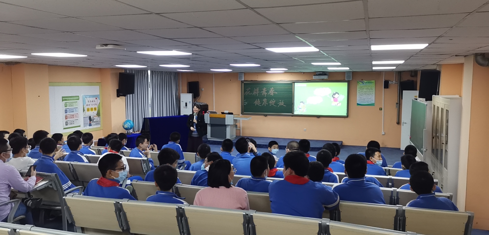 青春期是儿童期过渡到青年期,由幼稚走向成熟的中间阶段;是人一生中身体发育和智力发展的黄金阶段,也是形成正确的人生观、价值观和爱情观的重要时期。针对青春期学生的心理变化和生理特点,2021年3月30日,奥运村校区张妮、高香丽、赵燕三位老师,为初一年级全体学生开展了一场生动的青春期健康教育讲座《花样青春 健康绽放》。