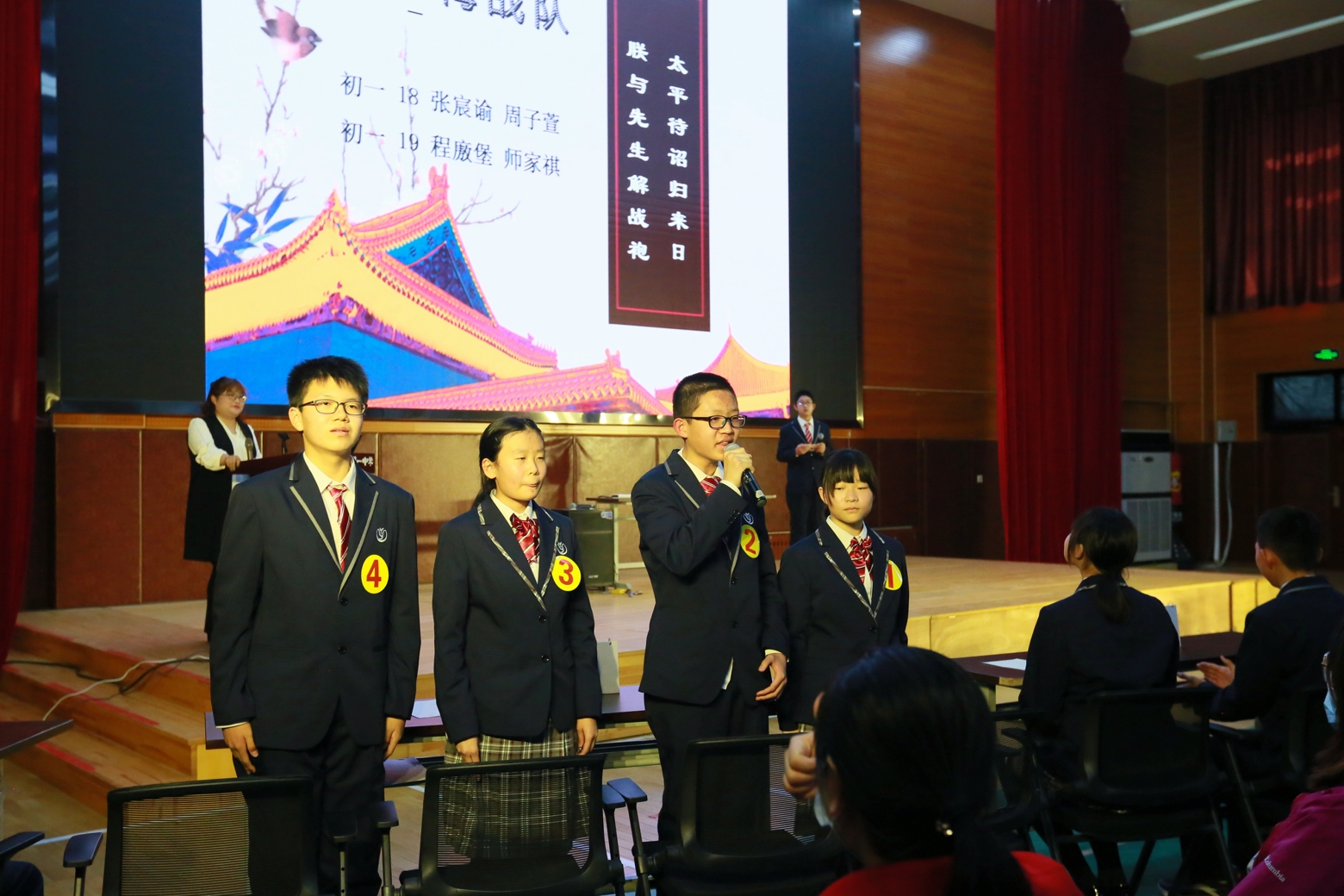28名初一同学组成的7支参赛队伍在朝来校区第一届诗词大会上大放异彩。本次诗词大会包括必答、抢答、飞花令三个环节。必答环节同学们功底扎实,屡屡得分,战况胶着;抢答环节同学们斗志昂扬,战况激烈,难分高下;飞花令环节同学们连翻接力,毫不停歇,掀起全场高潮,胜负难定。语文组教师的点评恰到好处,经典传唱人的表演锦上添花,整场诗词大会气氛热烈,掌声不断,从金戈铁马到琴棋书画,从大漠孤烟到水墨江南,从忠肝义胆到千里婵娟,在场众人,皆有所得。
