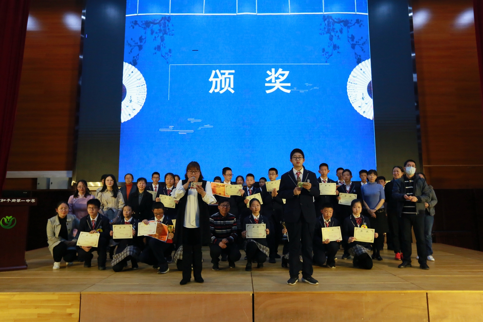 最后,校领导为获奖战队颁发奖状和礼品,全体参赛选手、学校领导和语文组教师上台留影合念,本次诗词大会圆满落下帷幕。