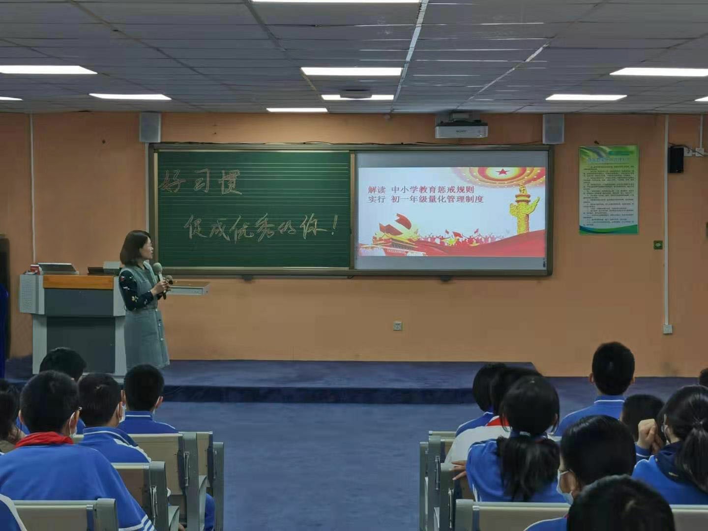 围绕“如何正确看待惩戒的教育价值并合理运用”,初一(22)班班主任王珊珊老师代表初一年级对全体同学提出具体要求以及量化评分标准,奖惩分明,惩戒有度。。