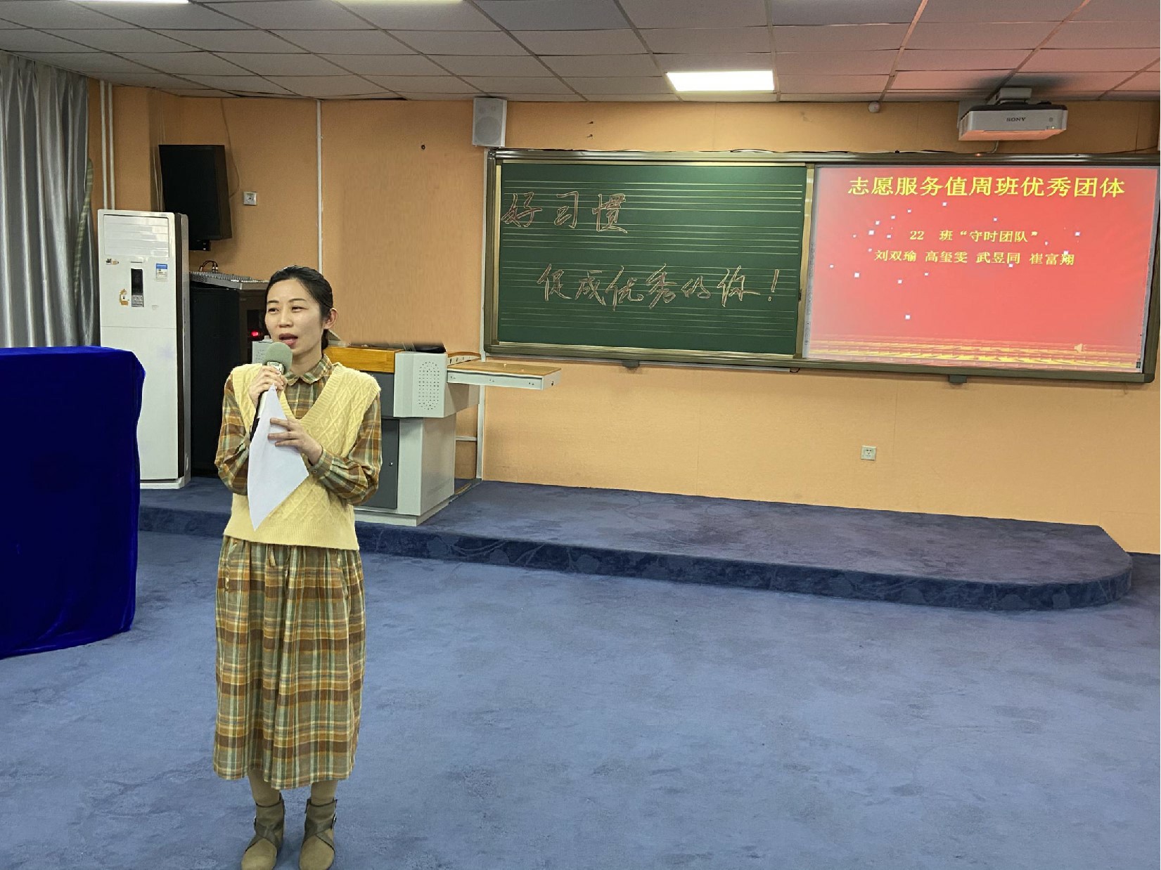 志愿者是奉献爱心的一颗颗小星星。有了爱心与助人为乐的精神,无处不有团结友爱的故事。初一(23班)班主任董佳琦老师对初一年级的志愿服务活动进行总结和表彰。