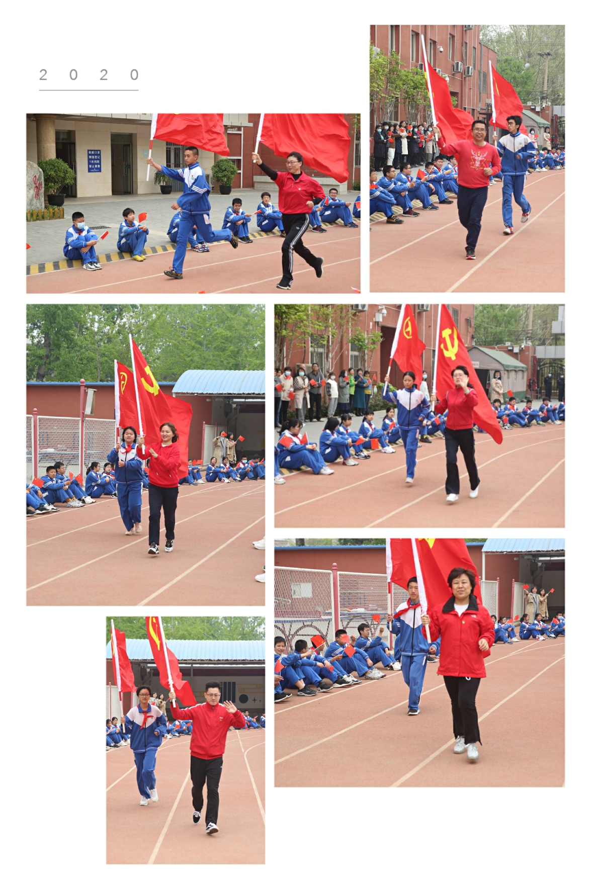 活动在庄严的国歌声中拉开序幕,校区党支部书记邹小刚副校长宣布启动仪式开始。有着20年党龄的历史学科李艳兰老师为我们讲述了中国共产党的故事。初一年级280名学生通过2个小时的彩排,利用翻花组成1921、2021和100字样,并在组字过程中声音洪亮地喊出“1921,不忘初心;2021,牢记使命;建党100年,吾辈当自强”的口号。随后,我校区12名党员教师代表、12名团员和少先队员代表,分别手举党旗和团旗,共同完成接力跑活动,寓意将革命精神薪火相传。初二和初三年级以及党员教师,组成了国旗小方阵,让校园处处洋溢着庆祝建党百年的气息。