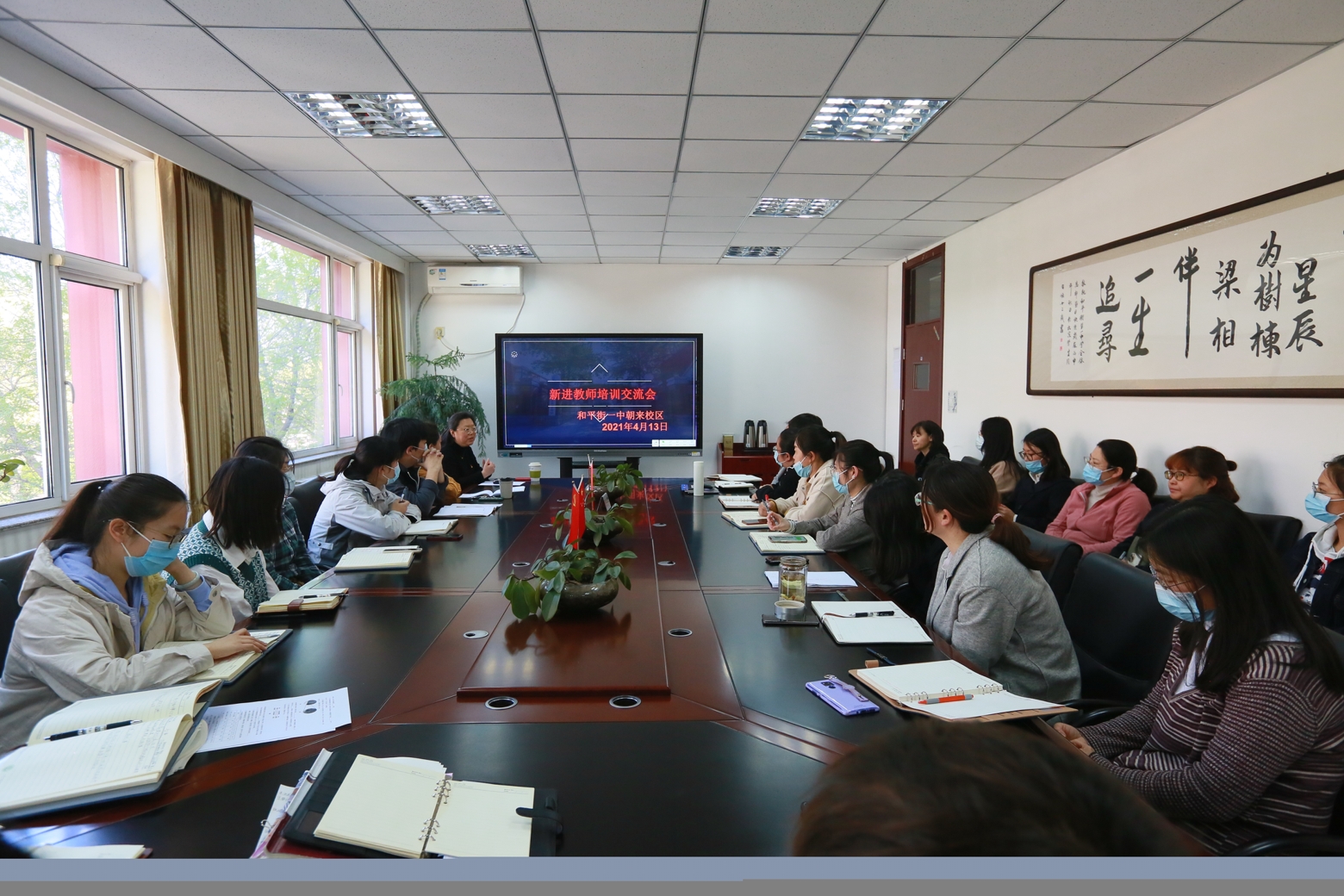 会议由张景鲜副校长主讲。她为与会教师细致讲解了学校文化、制度及发展理念;结合自身教育教学经验,与新进教师畅谈为师心得;讲述朝来校区名优榜样教师的感人事迹,鼓励老师们在和一中的讲台上追求卓越、精益求精、绽放自我。