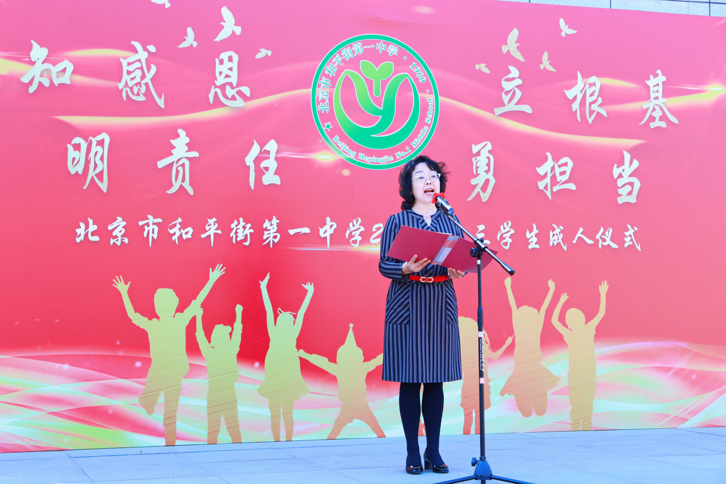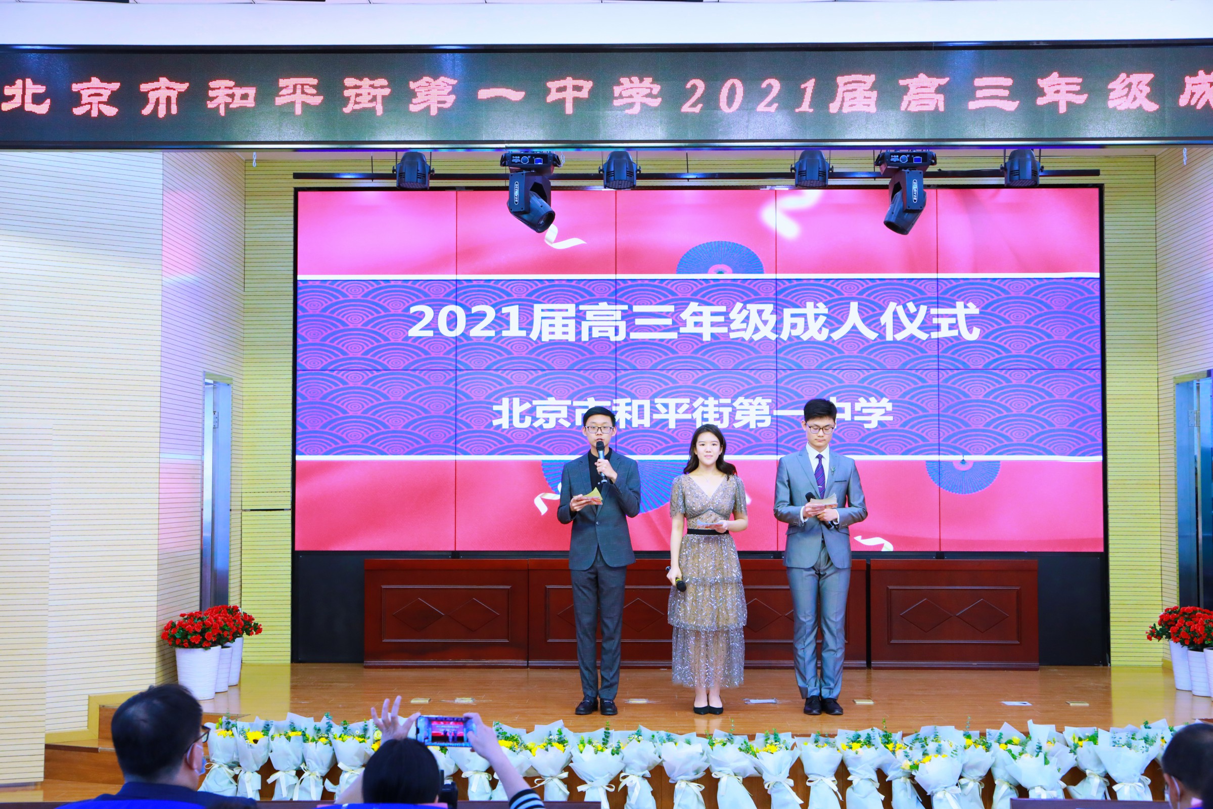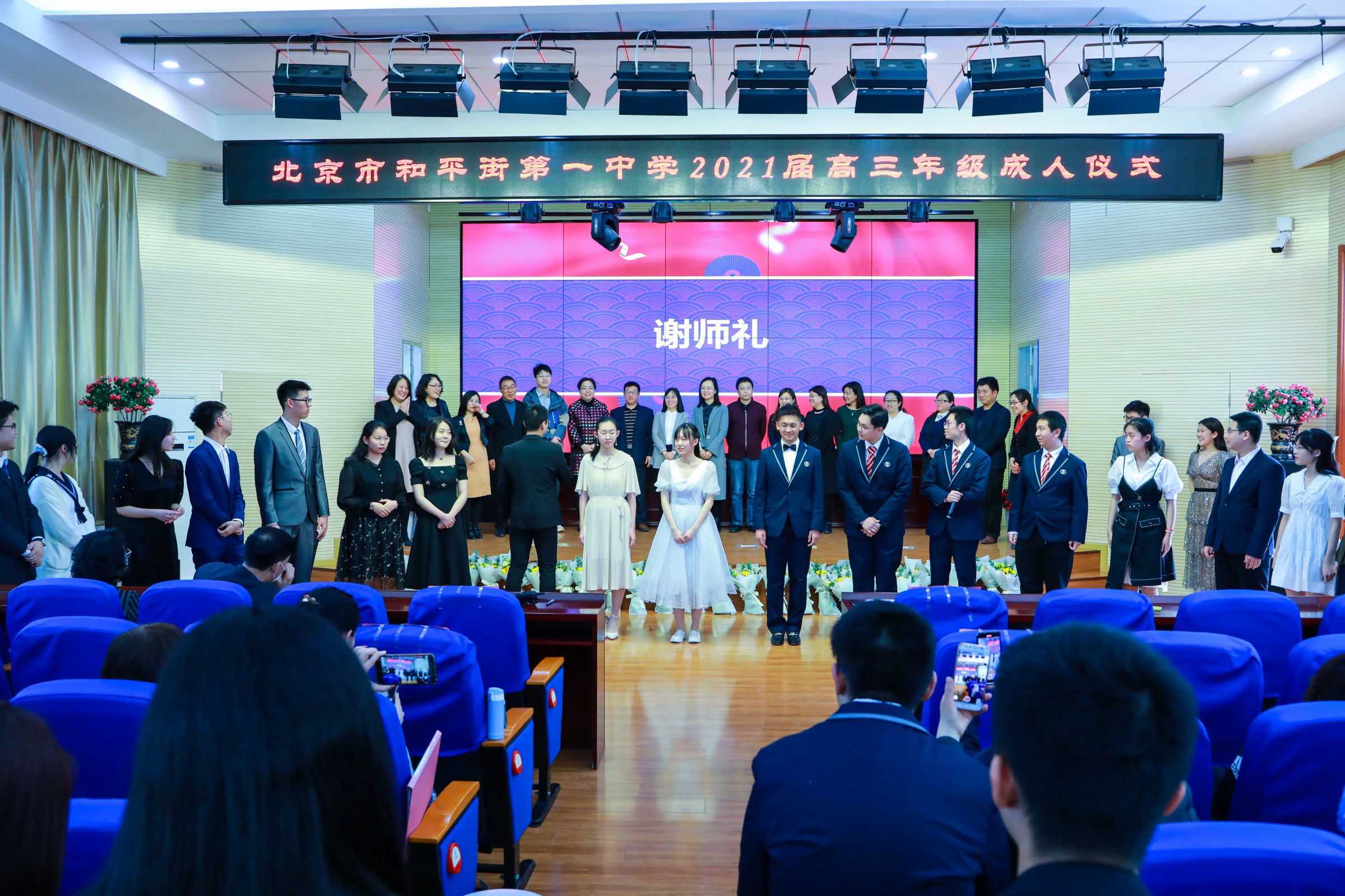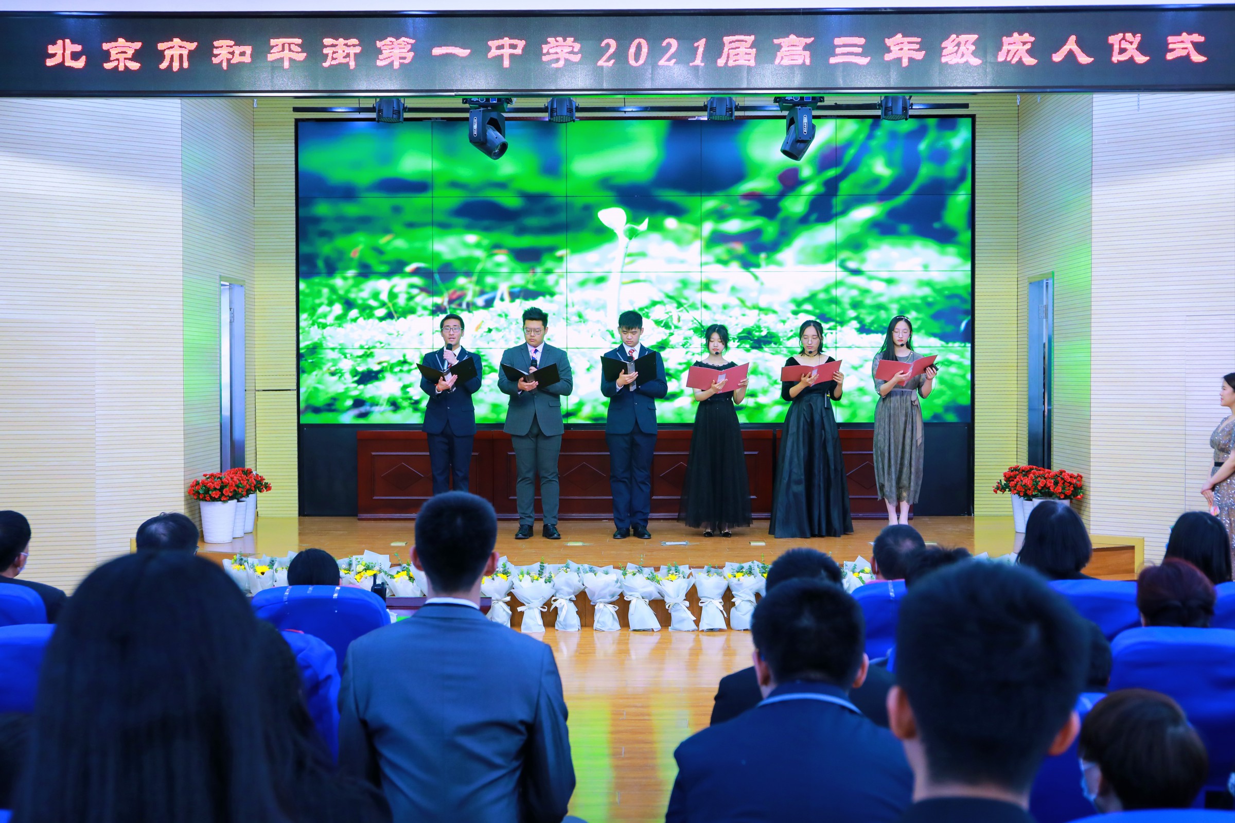 花开有声,青春励志;星辰大海,梦想起航。2021年4月13日,和平街一中和平街高中校区隆重举行了以“知感恩 立根基 明责任 勇担当”为主题的高三年级成人仪式。陈秀珍校长、曹成勇副校长、李春光主任、卢岩主任、高三年级全体师生及家长参加了活动。
