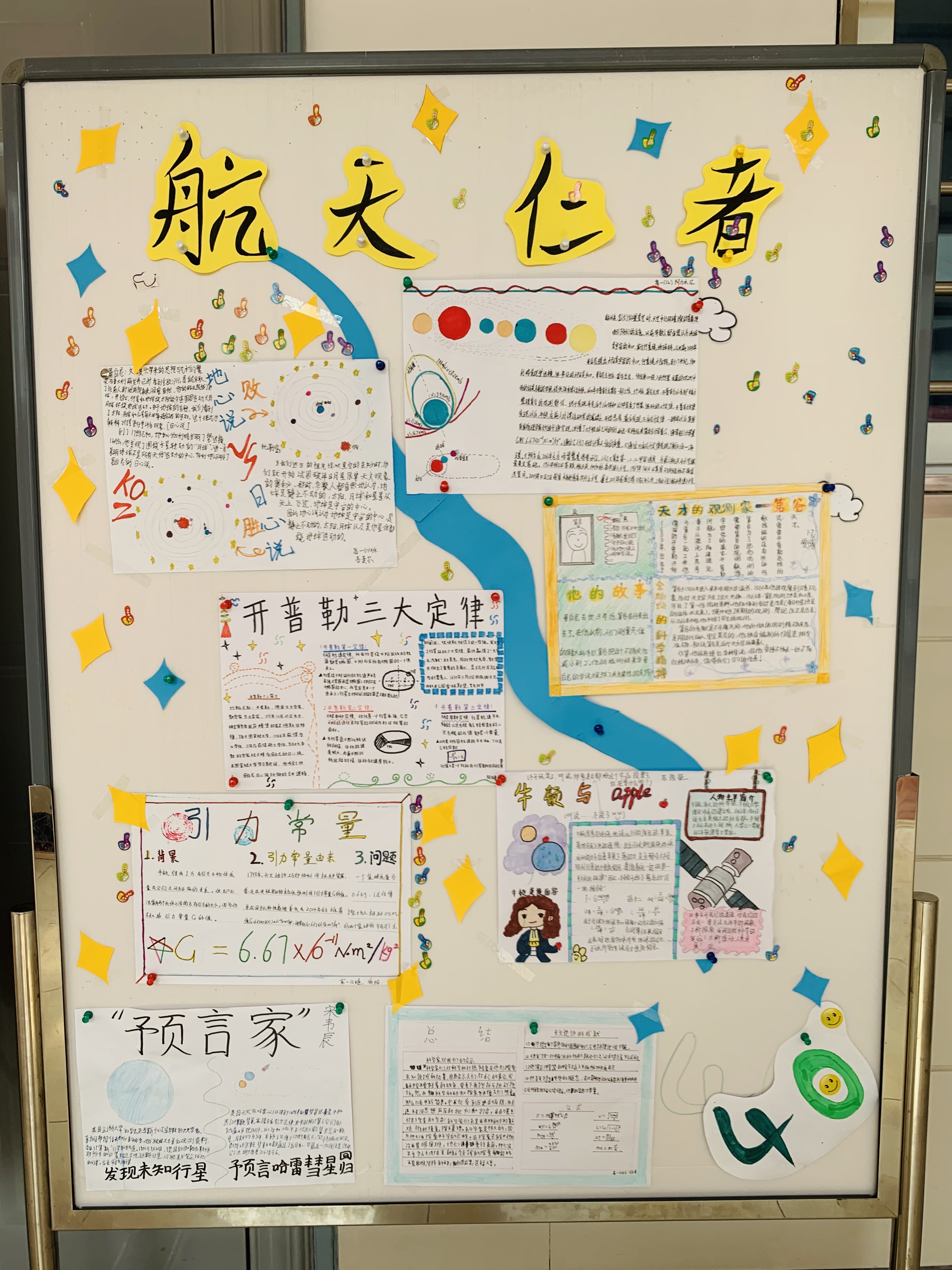 物理学科展出的内容是以正在学习的知识为载体,以多方面信息为延展,由两个方队以PK的形式制作并完成的。“40°”和“拾”这两方队,队员精诚合作,大开脑洞,精心设计了“圆周运动“和“万有引力”这两部分。
