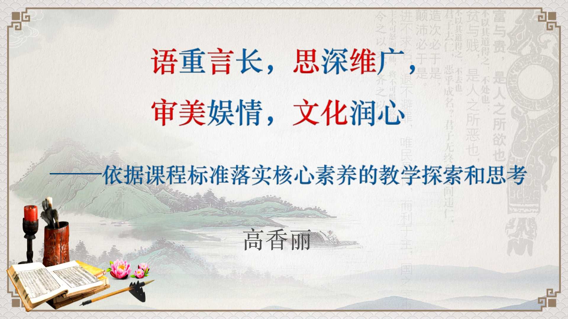 语文教研组长高香丽老师在交流中为大家介绍了语文学科核心素养的要素与内涵,阐述了课标、课本与课堂的关系,在教学中应做到且行且思且改进。