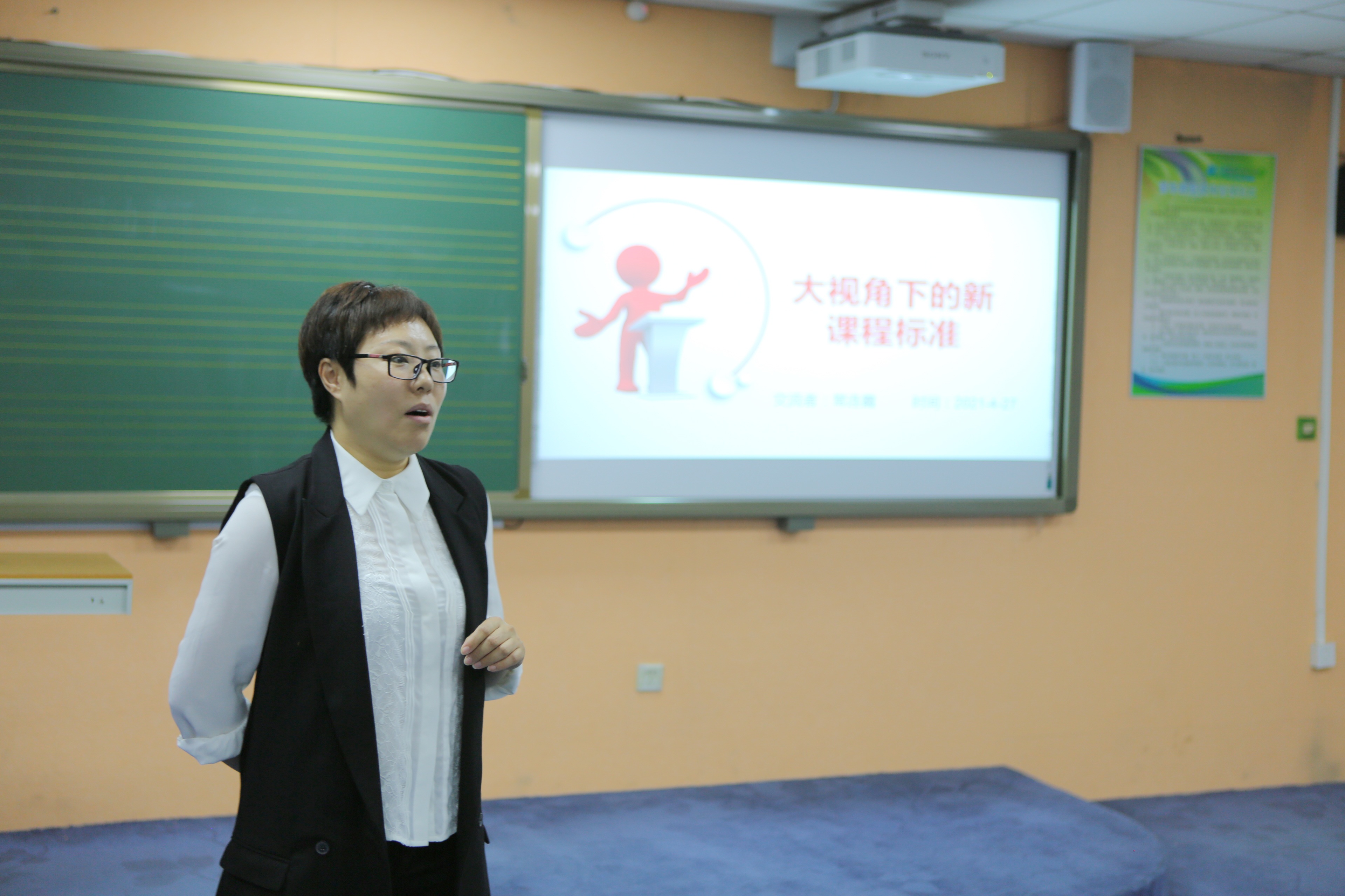体育区级骨干常连霞老师在交流中介绍了如何在新课程标准的指导下落实核心素养,并分析了新时代教师应该具备哪些能力。