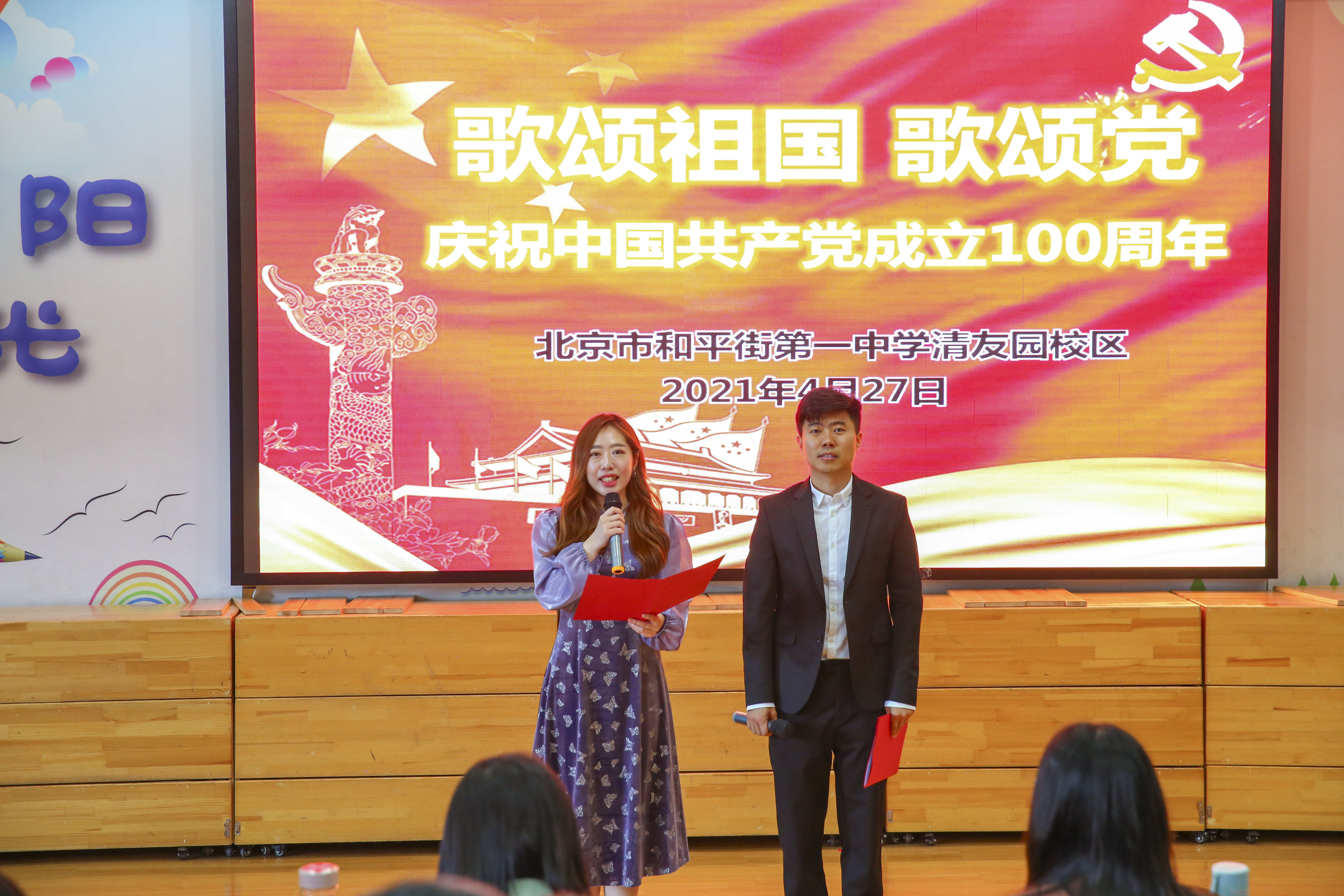 2021年4月27日下午,北京市和平街第一中学清友园校区迎来了一场文化盛宴——“歌颂祖国 歌颂党”庆祝我们伟大的中国共产党建党100周年。
