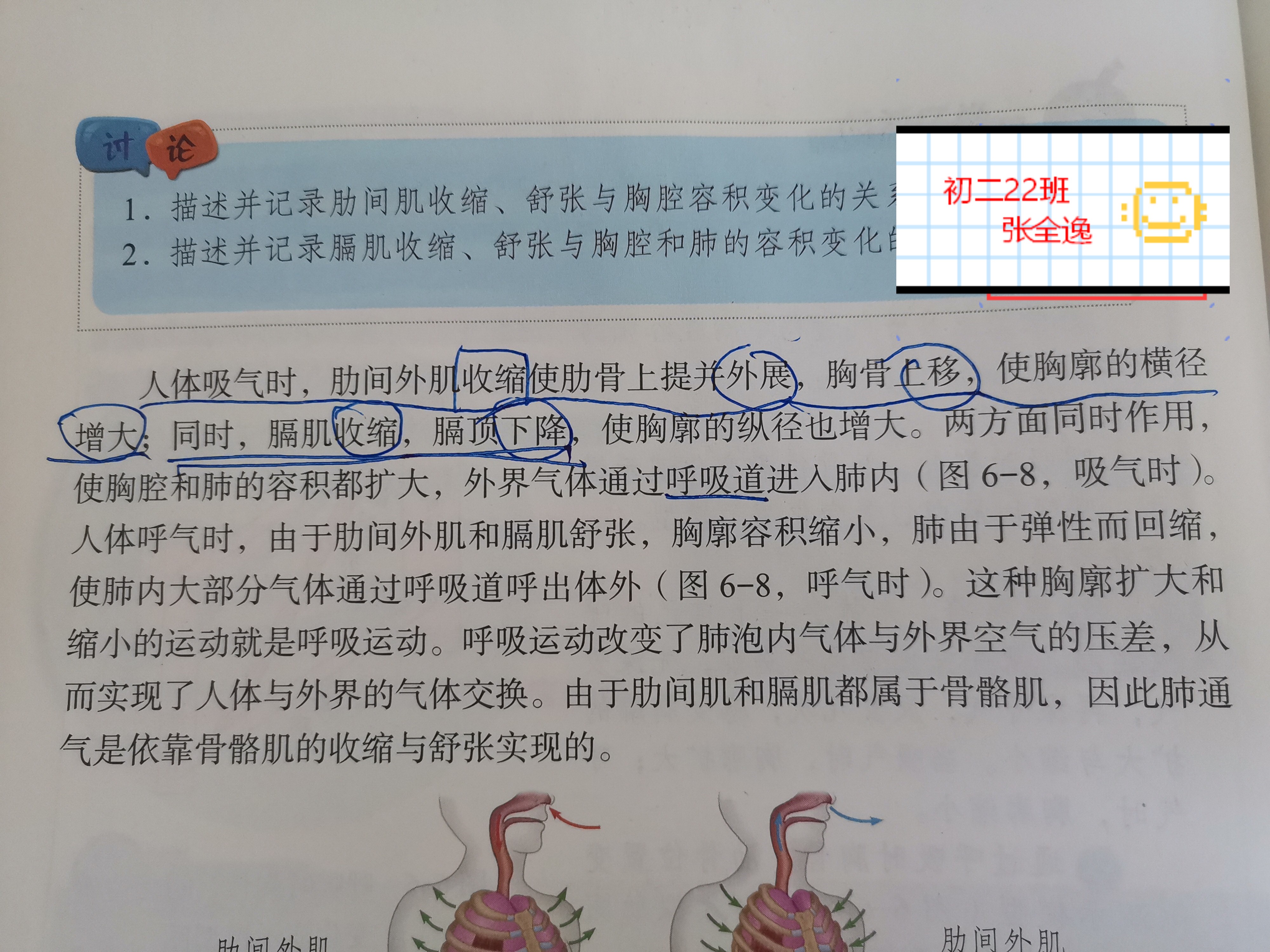 例如初学《人的呼吸》这一章,涉及到体积和压强的问题,由于物理学科知识的缺乏,学生很难理解呼吸运动的原理。在初二学习物理知识后,依照教材制作模型并进行使用和展示,可以帮助学生更加明晰地理解整个呼吸过程。