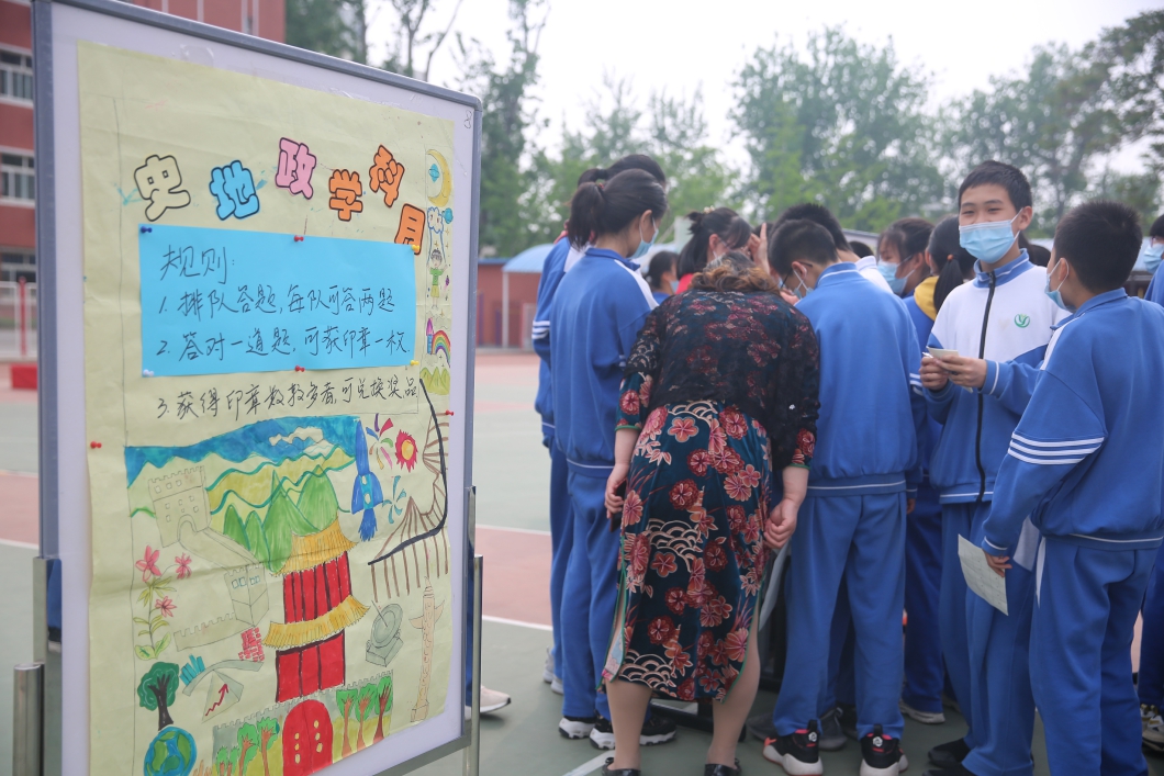 4月25日初一初二年级学生,在操场举办了知识答题知识竞赛。我们从史地政三科融合的视角,选取政治、经济、文化、社会、生态文明五大建设相关的综合试题去考察孩子们的综合知识素养,使其“在乐中学,在学中思”,并进一步培养学生们的政治认同、科学精神,坚定文化自信和文化自豪。同学们热情高涨,积极参与,特别表现出了和一学子的“礼仪”风貌。
