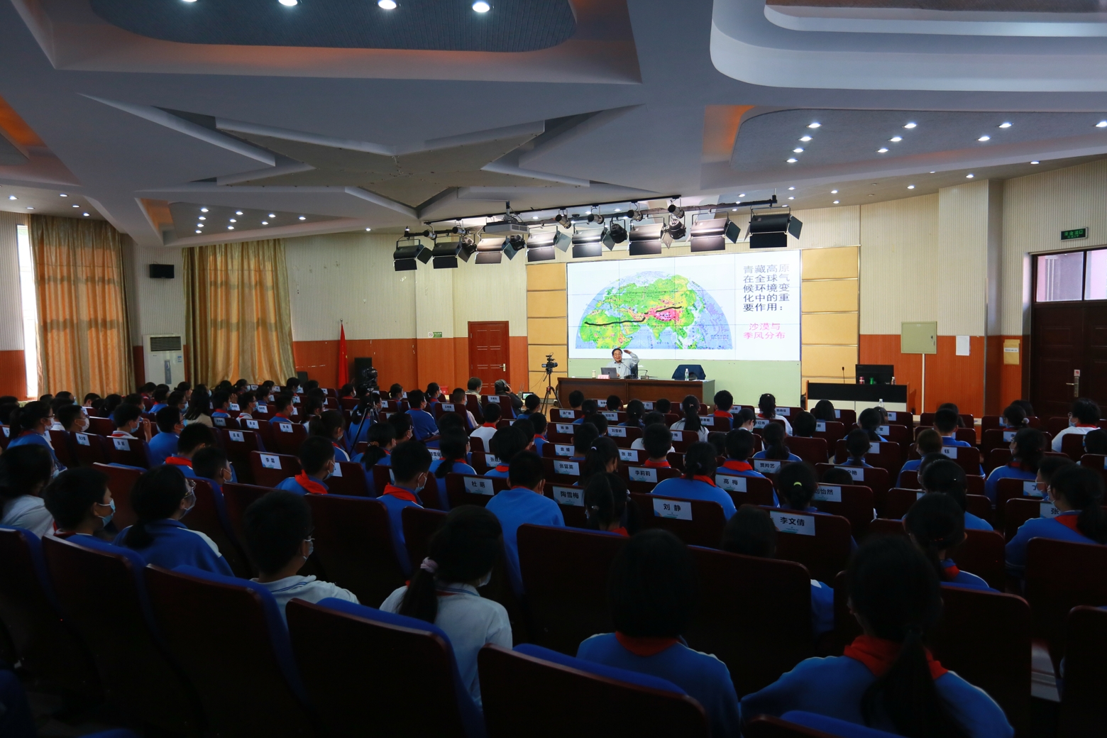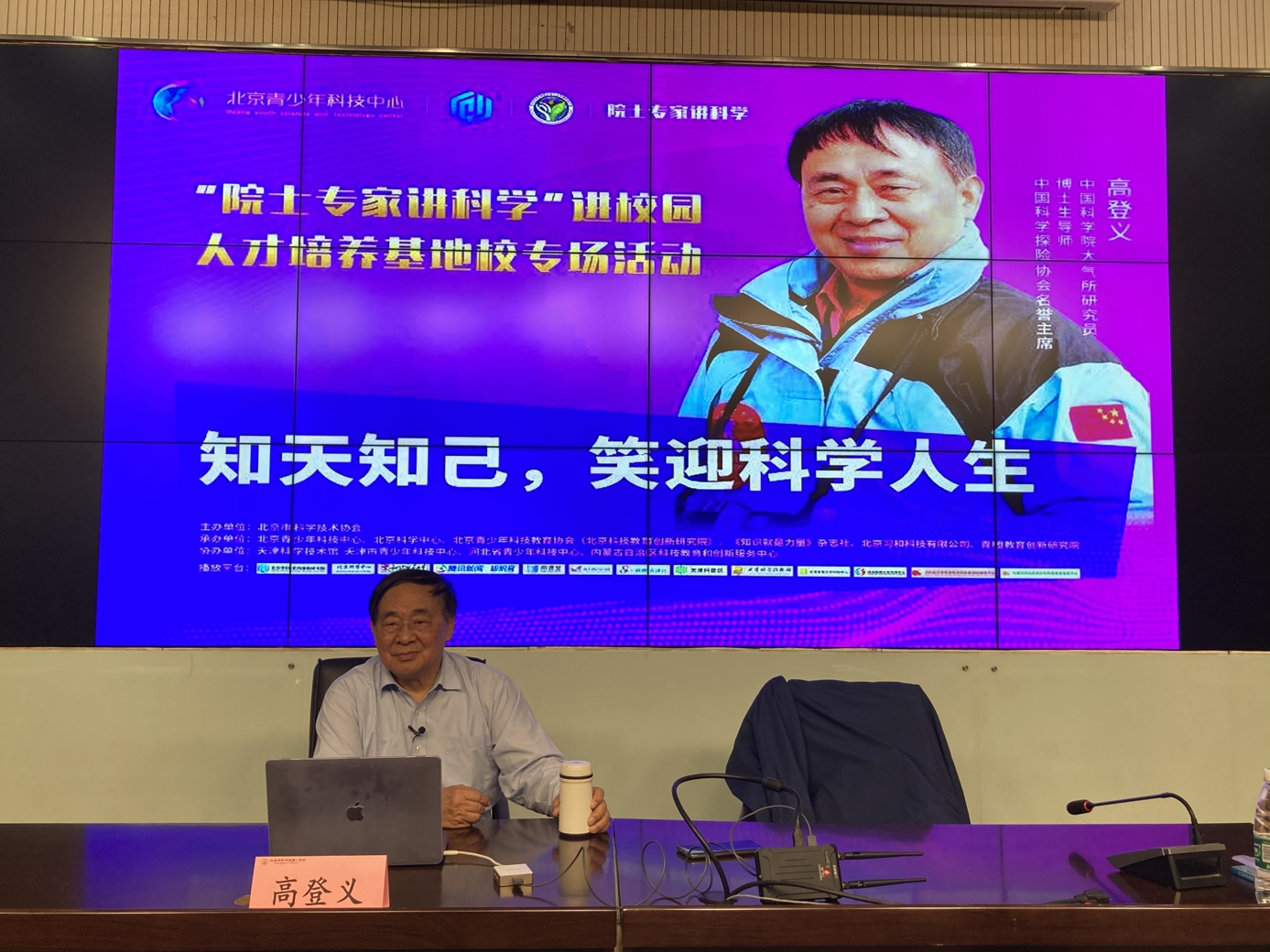 为了融合科教资源、精准服务基地校需求,,北京青少年科技中心、北京科学中心特组织“院士专家讲科学”进校园活动。2021年5月10日下午,中国科学院大气研究所研究员、博士生导师高登义教授受邀为和平街一中朝来校区师生作了主题为“关爱我们的地球环境,走进地球三极”的科普知识讲座,现场近200名师生共同聆听,一起走进科学世界,探秘我们可爱的地球家园。活动开始前,北京青少年科技中心赵峥科长向在场师生隆重地介绍了高登义教授,并表示希望同学们通过聆听讲座能够关注地球环境,保护我们的美丽家园。