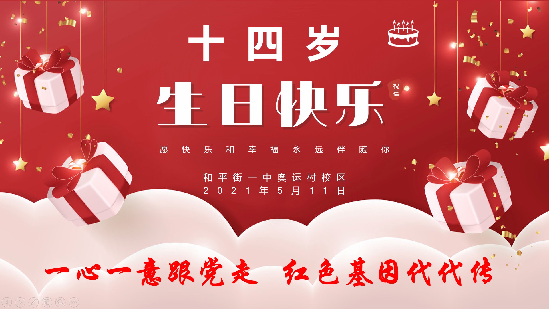14岁是烂漫如歌的年纪,14岁是青春的序曲。2021年5月11日下午,和平街一中奥运村校区初二年级全体师生在一层礼堂举办了“一心一意跟党走 红色基因代代传”暨初二年级迈好青春第一步主题活动,学校采用腾讯会议同步面向家长直播。整个活动以 “成长、感恩、责任、立志” 四个部分展开。