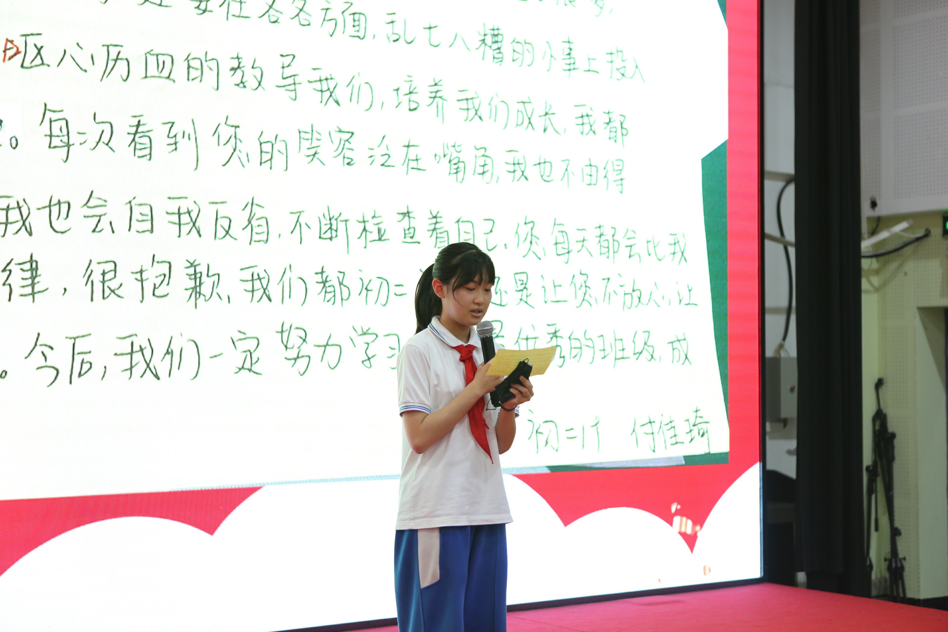 成长是学生的每个第一次,成长是跌跌撞撞还依然向前,成长是从懵懵懂懂到成熟蜕变。部分家长精心制作了孩子们的成长视频,讲述着父母对孩子的殷切期盼,学校也用视频记录了同学们从入校的青涩到现在的成长。周建萍副校长的致辞,更是细数了同学们从入校以来的点点滴滴,为他们送上了美好祝愿,并鼓励他们用刻苦努力成就灿烂的青春时代,用奋斗的青春去建设伟大的祖国!