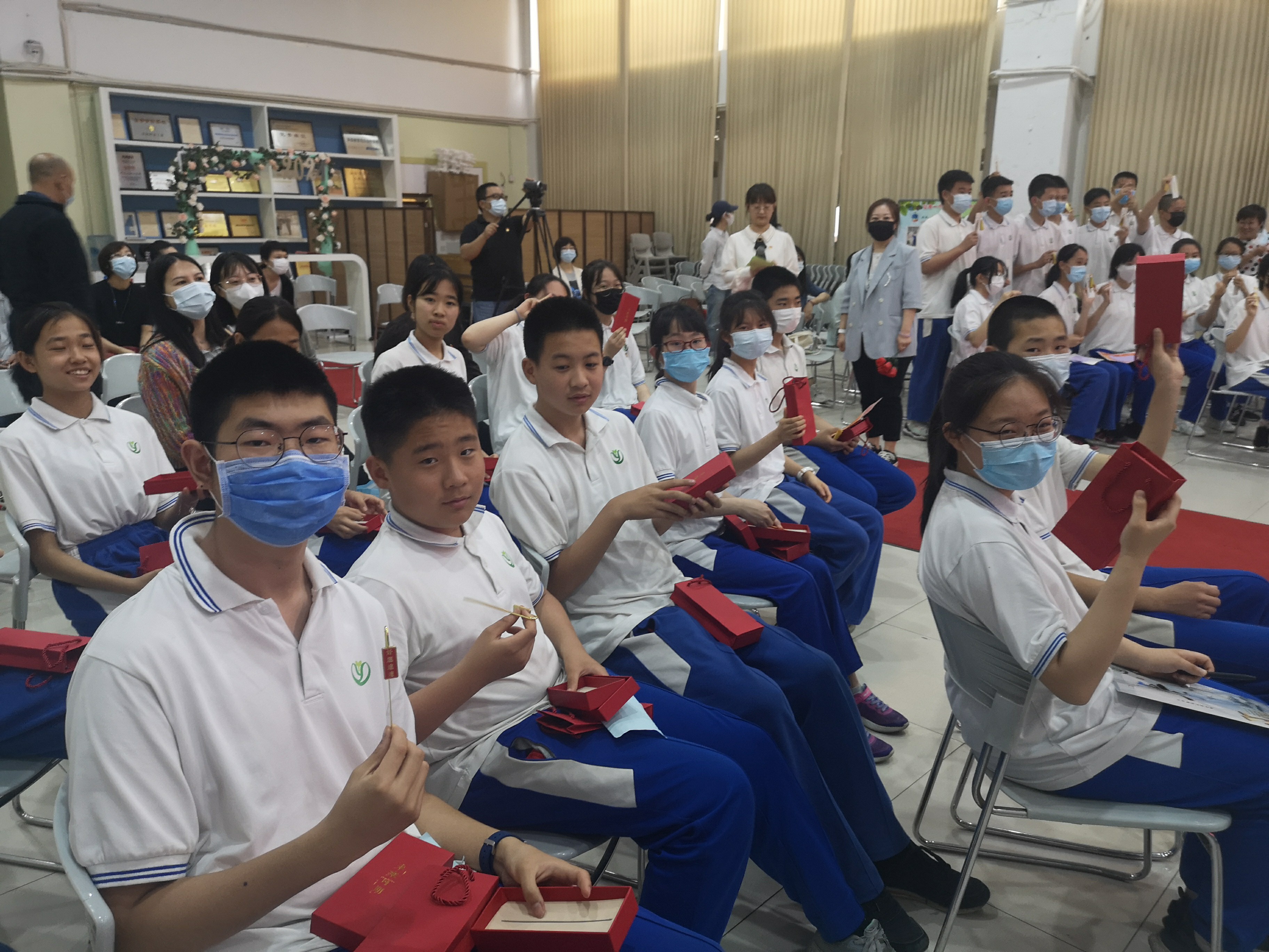 “我们是共产主义的接班人,继承革命先烈光荣传统,爱祖国,爱人民……”初二年级全体学生最后一次唱响《中国少年先锋队队歌》,庄严地摘下红领巾,进行离队仪式。同时,8名同学光荣地成为入团积极分子。他们分别分享了团的基本知识、党的百年发展历程中优秀青年故事,他们将带领全体学生在人生的新起点上,当好先进青年,不断实践,担起新时代赋予的责任,用青春践行中国梦!