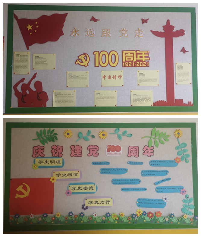 百年征程波澜壮阔,百年初心历久弥坚。为庆祝中国共产党百年华诞,奥运村校区开展了以 “一心一意跟党走,红色基因代代传”为主题班级壁报展示活动。