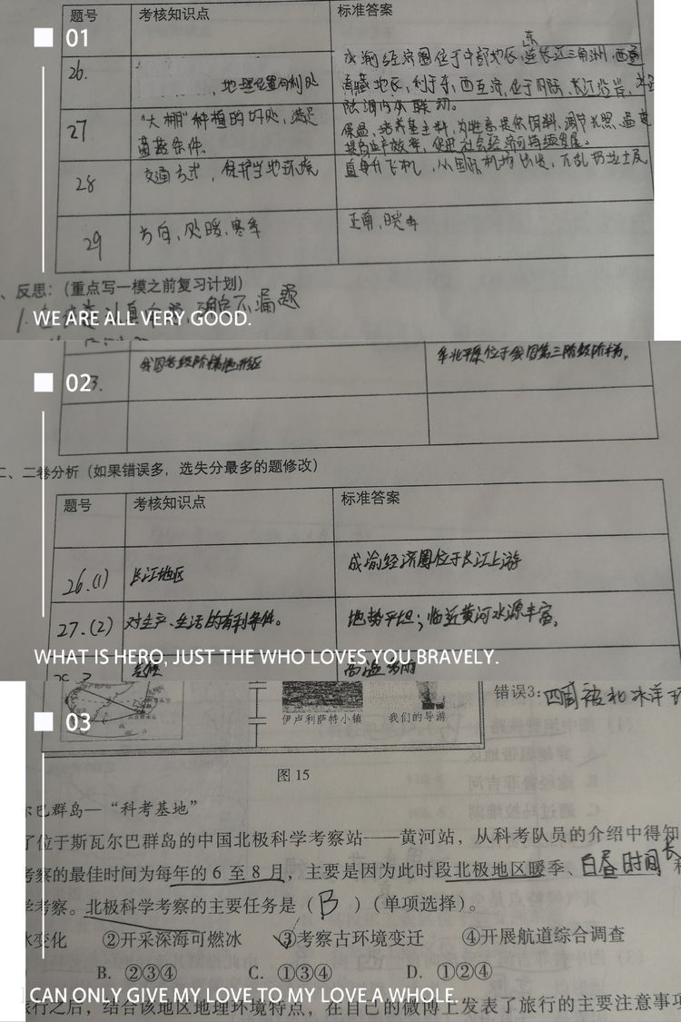 学生分别从试卷的考查内容、自己的失分原因以及之后努力的方向做了细致的自我剖析,找到前期学习的不足之处,对症下药,积极改进。