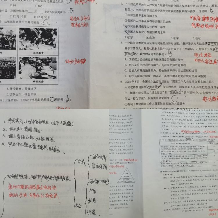 道法学科教师注重学习方法的改进与指导,指导学生自我诊断检测中出现的问题,并结合学生的自我分析进行面批面改,改进学习方法,找准努力方向。