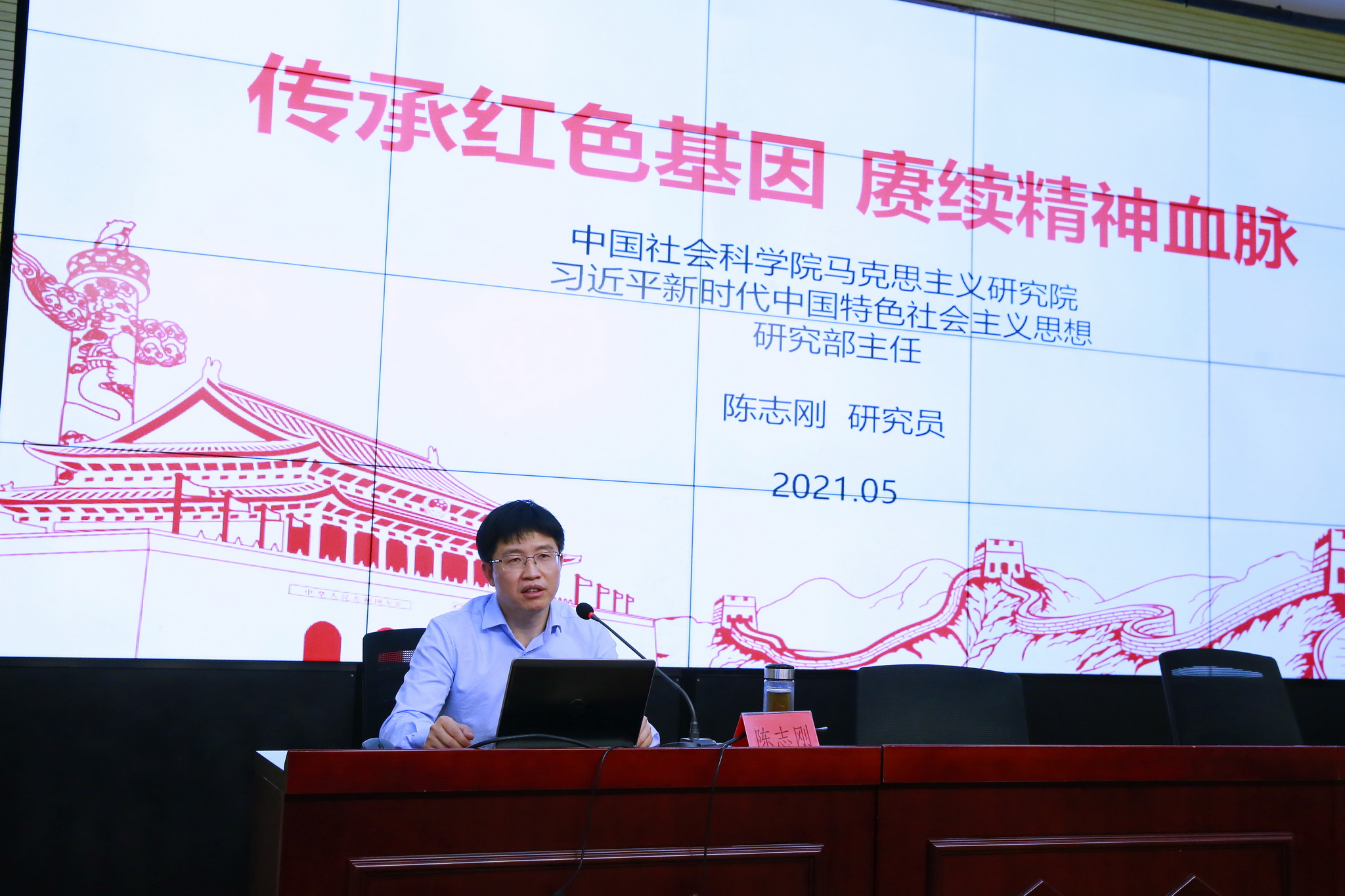中国社会科学院马克思主义研究院习近平新时代中国特色社会主义思想研究部主任、研究员陈志刚应邀前来为师生进行党史讲座。陈主任以“继承红色基因,赓续精神血脉”为题,从“伟大精神创造辉煌”“弘扬伟大精神,开拓新征程”“在奋斗奉献中实现人生价值”三个方面进行讲述;全面解读了中国共产党百年奋斗历程中形成的红船精神、井冈山精神、长征精神、延安精神、大庆精神、两弹一星精神、改革开放精神、新时代北斗精神、探月精神、抗疫精神、脱贫攻坚精神等一系列伟大精神;深刻阐释了开展党史学习教育的重大意义在于知史明理、知史崇德、知史增信、知史力行;并激励广大师生发扬红色传统、传承红色基因,赓续共产党人精神血脉,始终保持革命者的大无畏奋斗精神,迈进新征程,奋进新时代。
