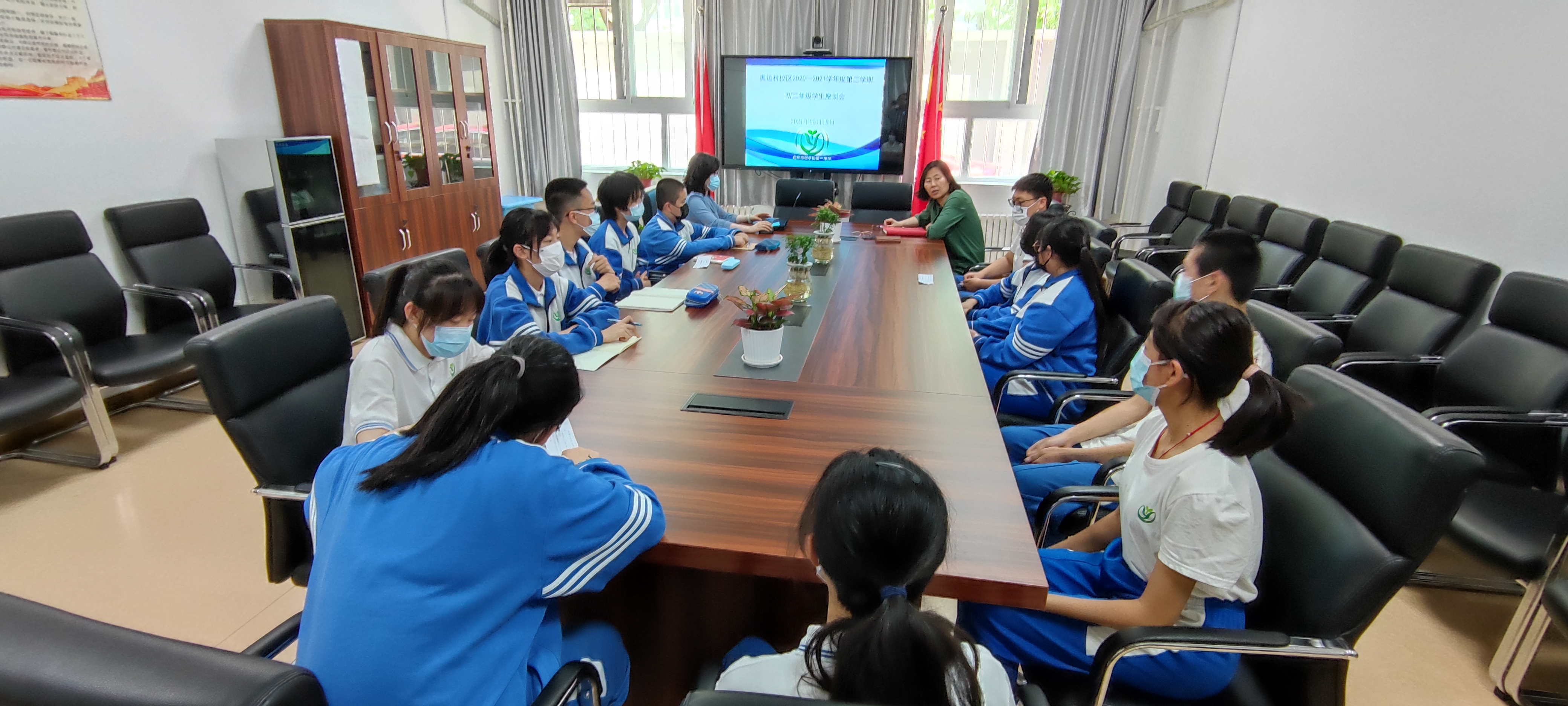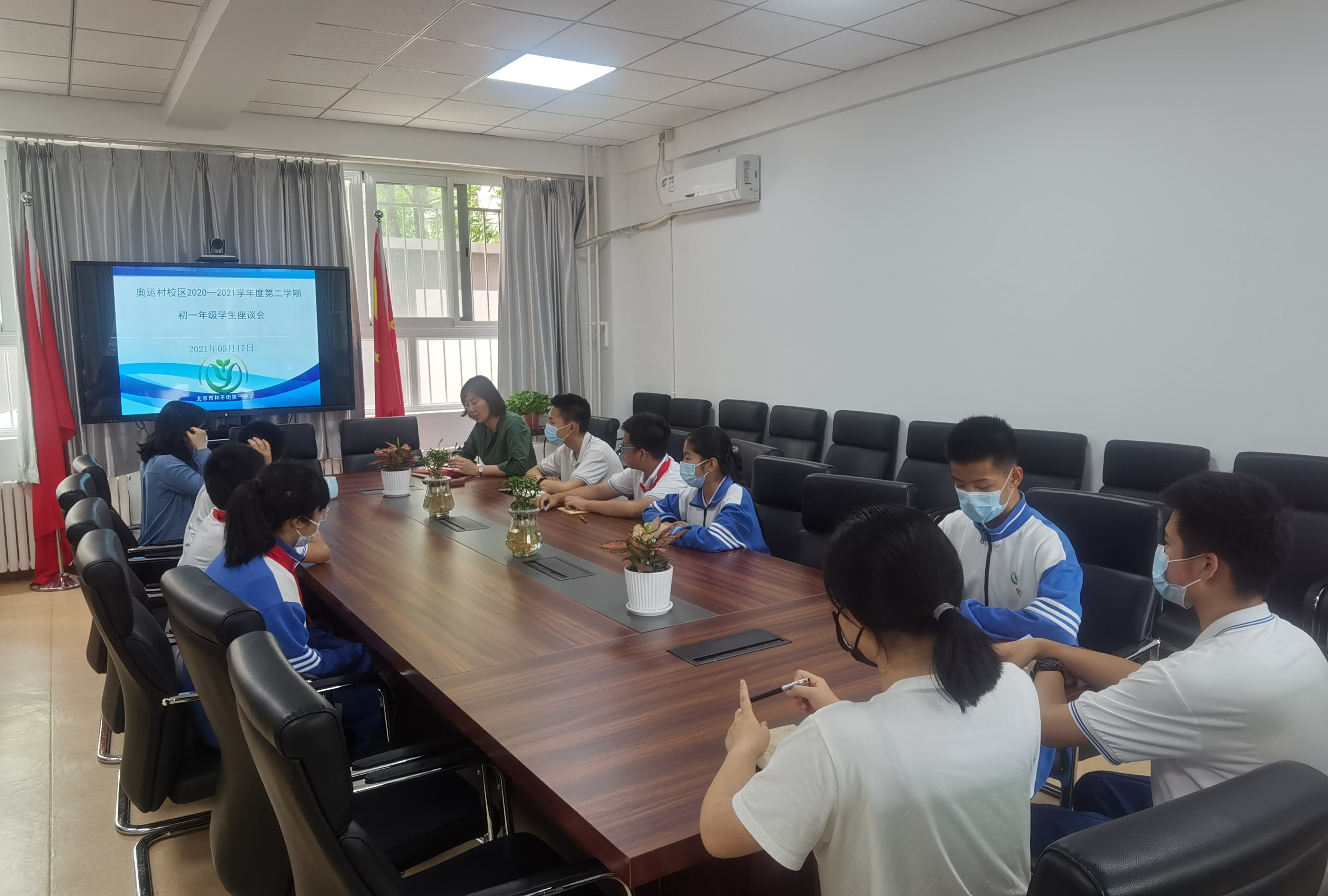 为了更加全面了解学生在教育教学方面的需求,认真落实“双减”工作,培养学生的自我管理能力,2020年5月17日和18日中午,和平街一中奥运村校区分别召开了初一、初二年级期中学生座谈会,教务处张劼主任和学生发展处王瑾主任参加了会议。