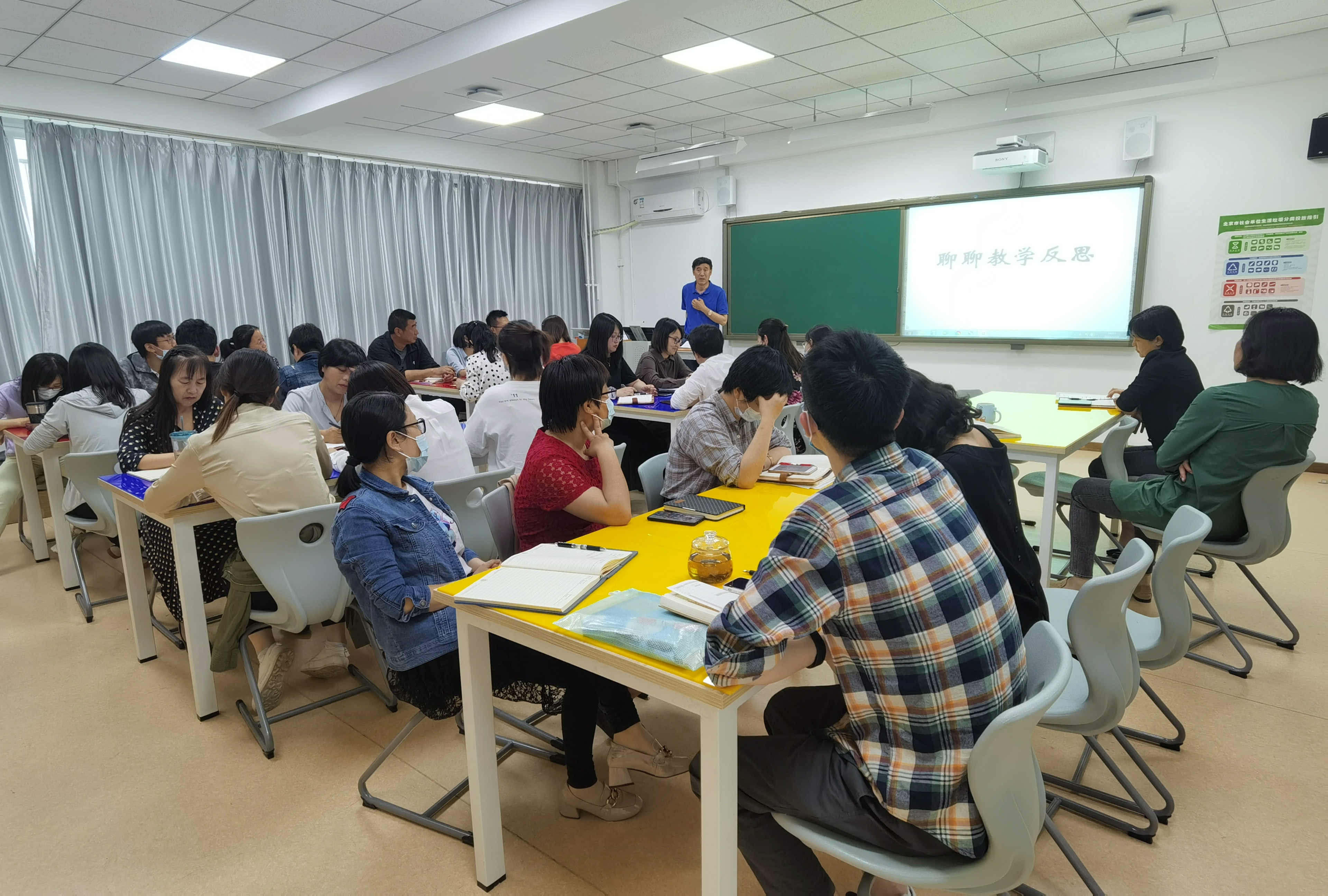 为提升教师自身业务水平,改进教学方式,积极探索优化教学,2021年5月18日和平街一中教学主管副校长、特级教师曹成勇以“聊聊教学反思”为话题,以自身实践为实例,从“教师的心态和修养”、“教学反思的重要性和方法”、“如何进行反思后的教学完善”等方面,为奥运村校区的一线教师进行了一次深入浅出、切实有效的培训。