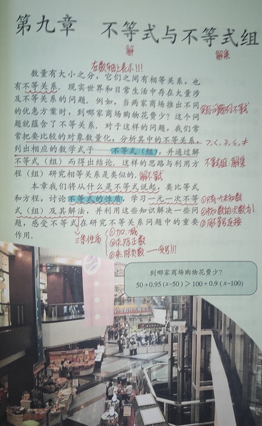 对于数学概念、数学定理、例题书写过程,教师会让学生一字不漏的先阅读教材,再归纳,在理解的基础上记住知识要点。例如:一元一次不等式的解法,书上例题过程很详细,教师会要求学生在书上注明步骤依据,知其然并知其所以然。再如:在学习统计这一章时,要求学生在教材上画出重要统计术语,重点看书上的规范图表,通过阅读课本上的书写、画图的规范过程加深理解。