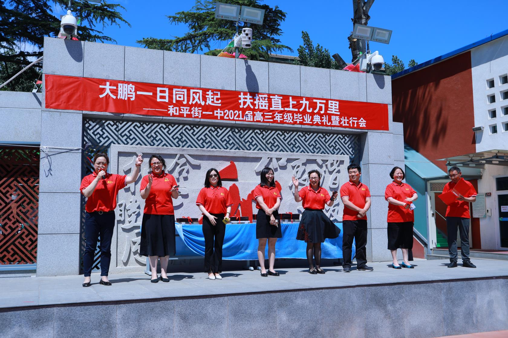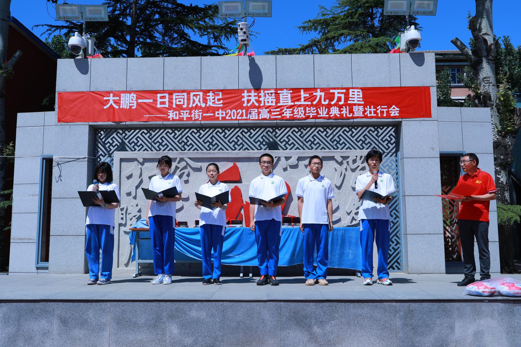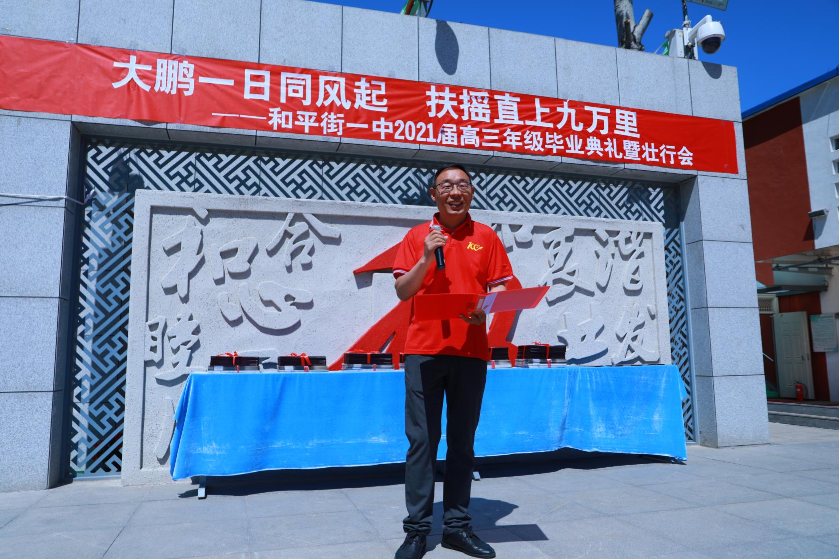 岁月不居,时节如流。2021年是中国共产党建党100周年,在这个特殊年份参加高考,就更具有特殊的意义。2021年6月4日,和平街一中和平街高中校区全校师生齐聚操场,隆重举行了以“大鹏一日同风起,扶摇直上九万里”为主题的2021届高三毕业典礼暨壮行会。