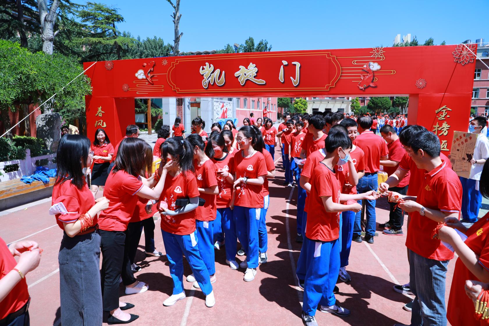 奏响凯歌,跨过凯旋门,高三学子将在人生最美的季节,播下最美的梦想。收获祝福,走过毕业门,高三教师为学生戴上寓意“吉祥如意”的红丝绳,期待高三学子乘风破浪开启新的征程。陈秀珍校长和曹成勇副校长为高三学子送上印有“金榜题名”的状元饼,希望高三学子凯旋而归,捷报频传!