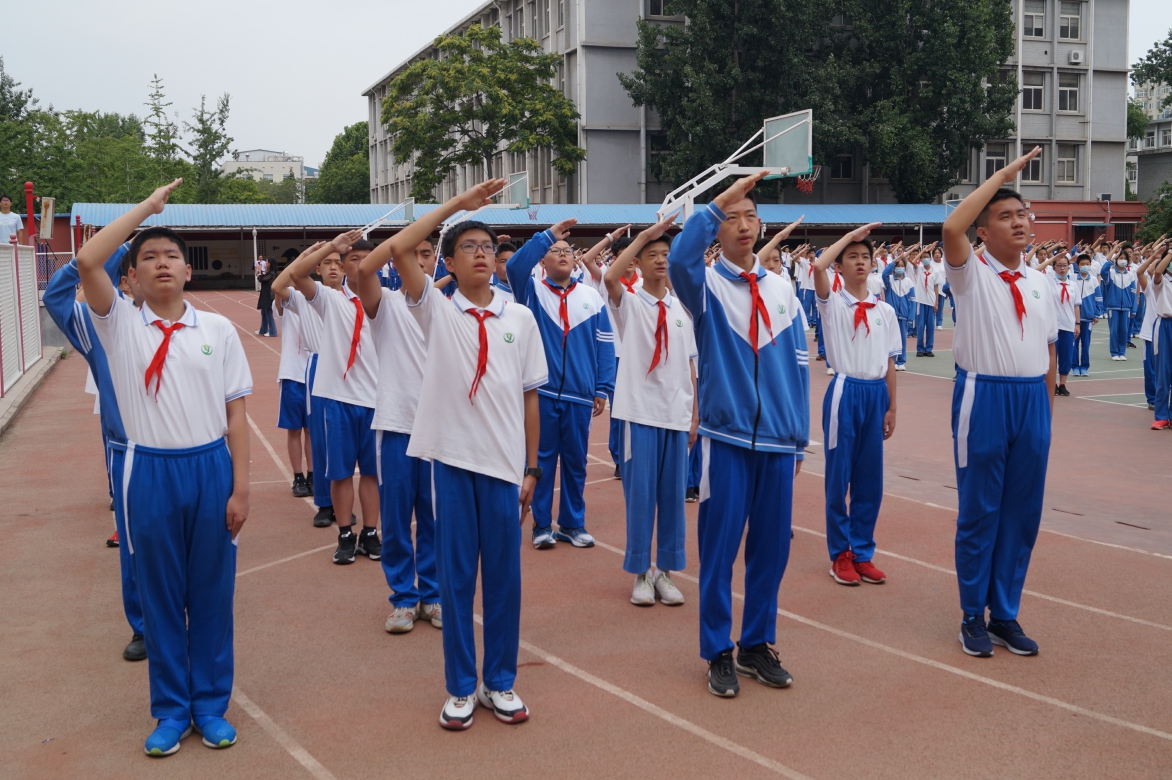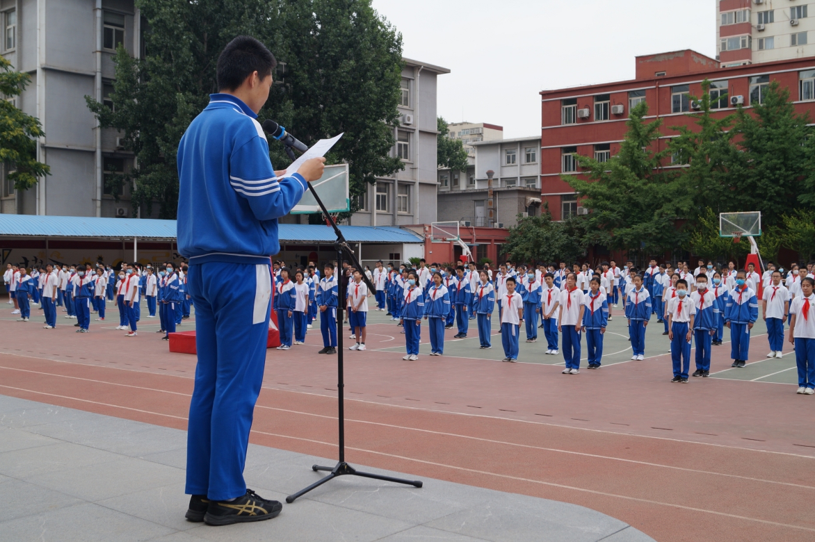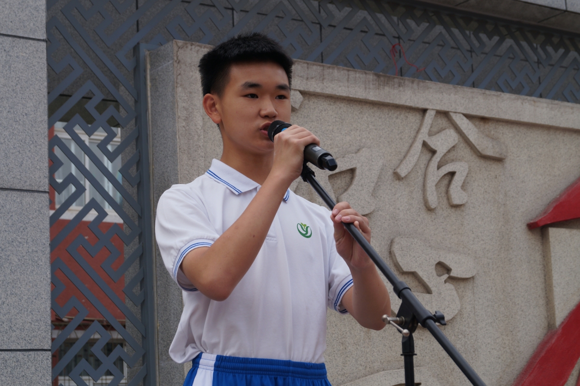最后,大会还进行了升旗仪式新老主持人的交接仪式,初三2班翟俊达同学正式向全校师生介绍新的主持人,来自初一9班的崔家铭同学,并发表了自己的离别感言,感谢老师与同学的信任与支持。