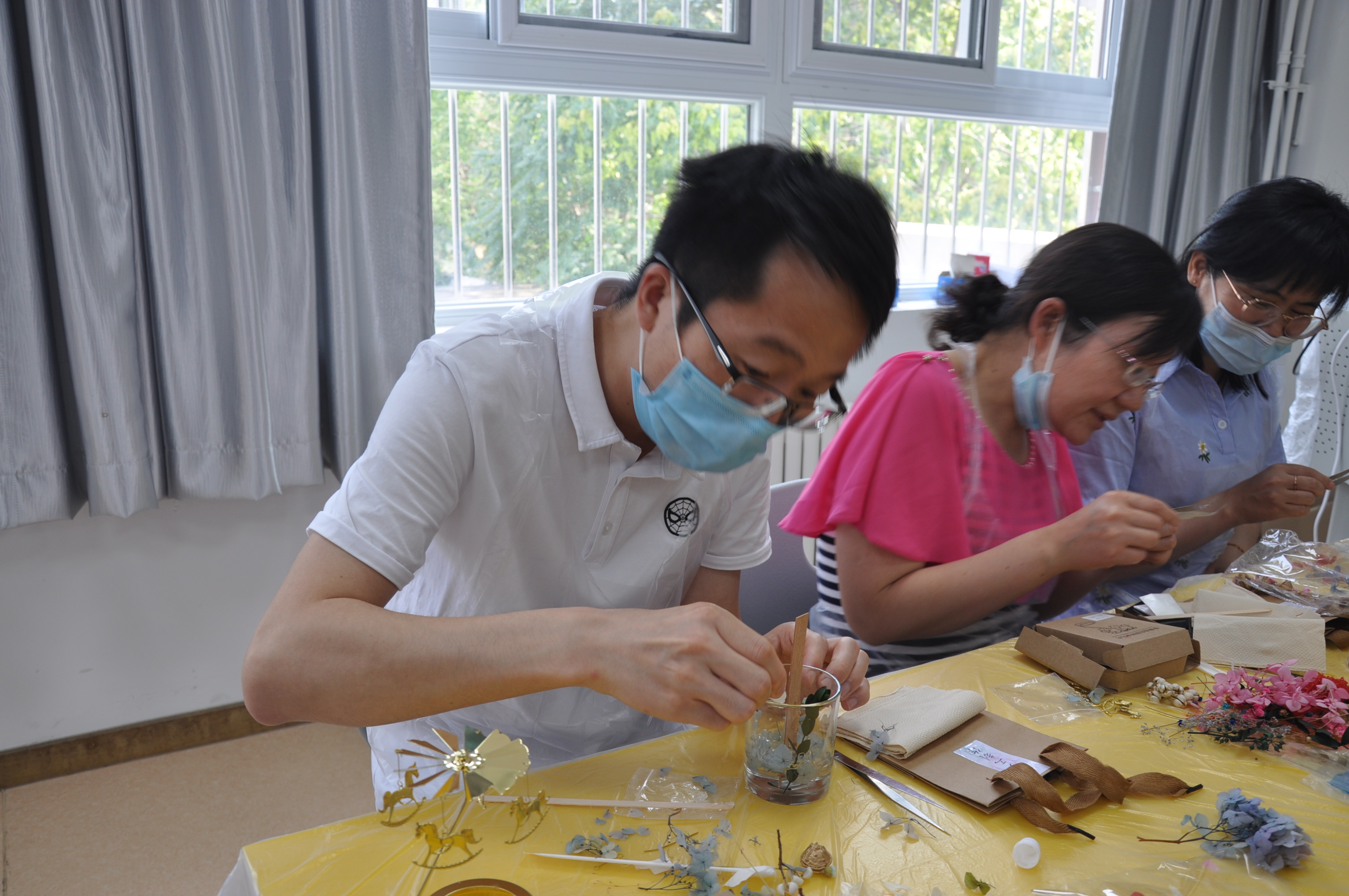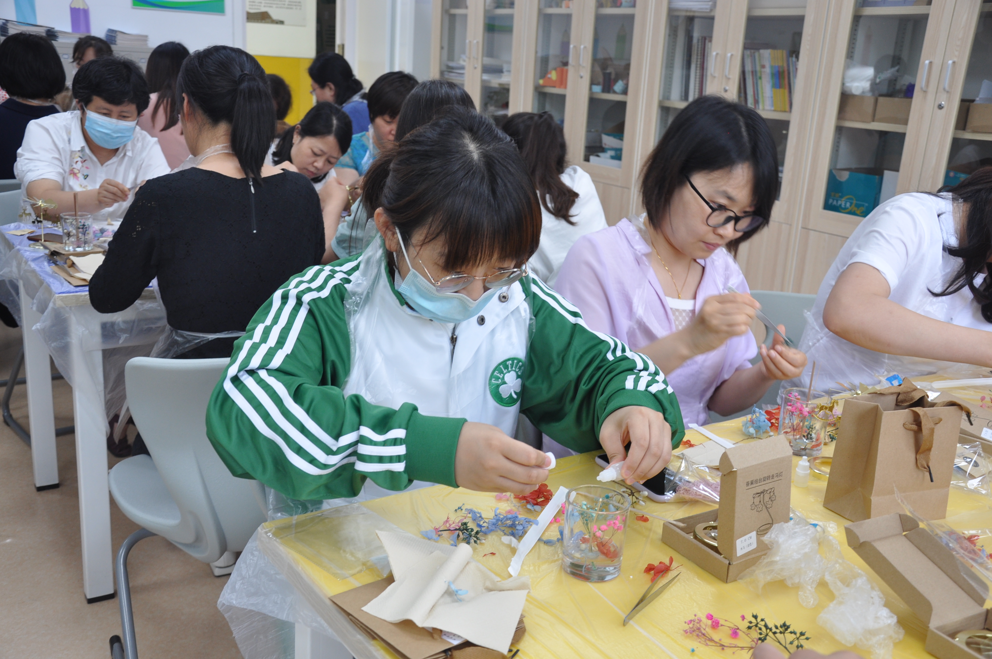 首先由专业教师为大家讲解了香薰走马灯的基本原理和知识,接着介绍了制作工具和使用方法,随后在专业教师的指导下,老师们纷纷开始了自己的创作。全校教师积极参与,用心体验。蜡烛在美丽的走马灯装饰下挥发芬芳香气,净化心灵。蜡烛中的干花都由老师们自行搭配,精心构图,每个人都创造出了精美的微景观。每一款作品都是如此的别出心裁。
