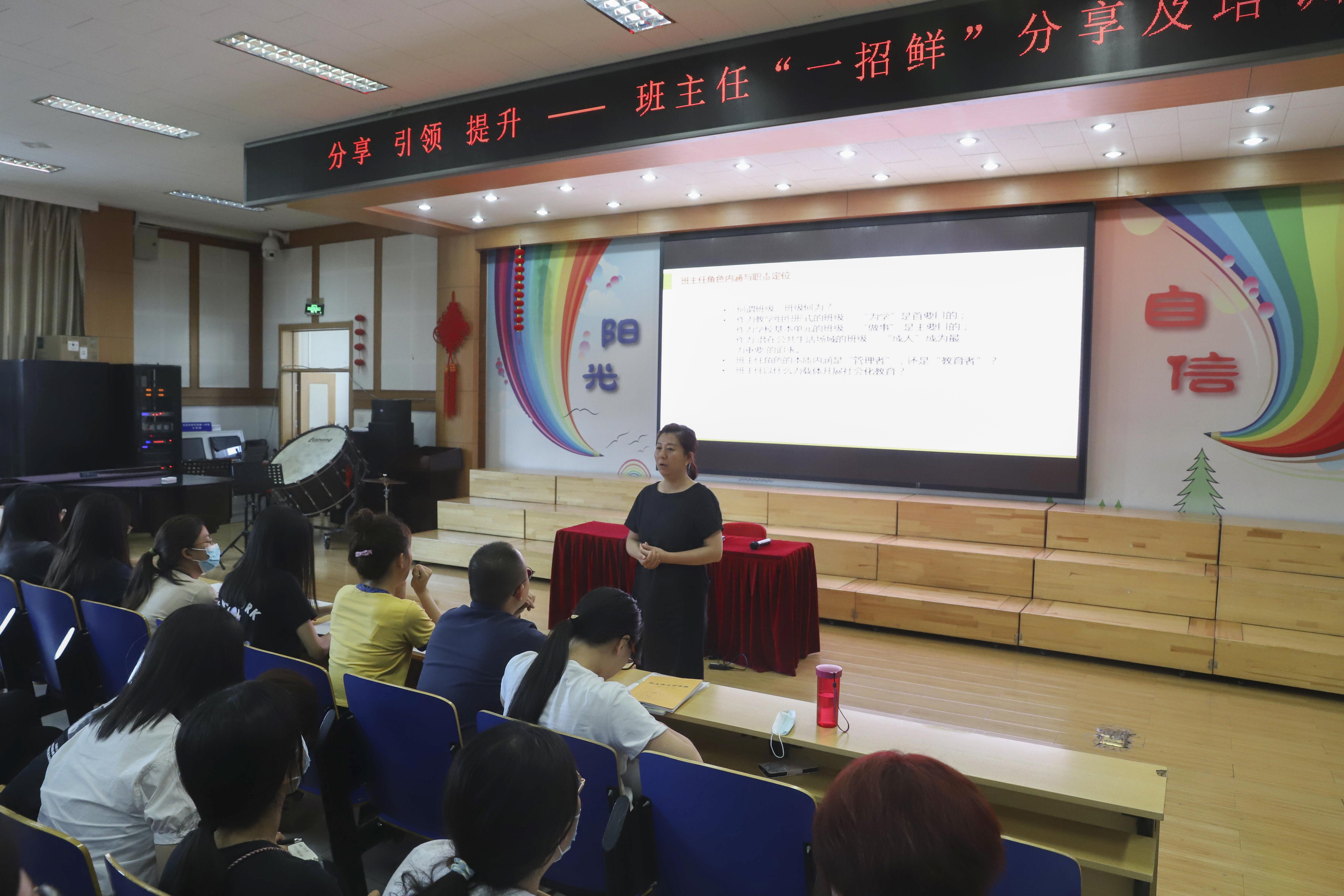 2021年6月21日下午,北京市和平街第一中学清友园校区召开以《分享 引领 提升》为主题的班主任“一招鲜”分享及培训,希望通过本校教师的“一招鲜”经验交流以及专家的专业引领,提升班主任教师的专业素养及育人实效。本次培训由德育处主任何凤驰主持,校区主管校长殷桂萍亲临会场,校区全体班主任一起参会。
