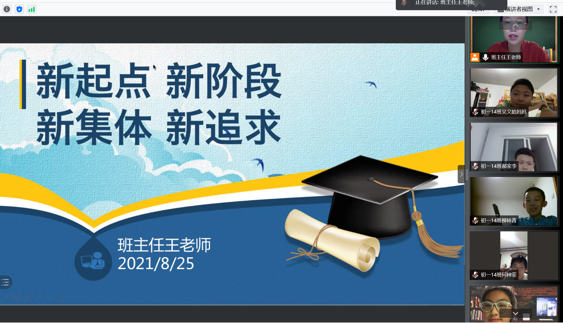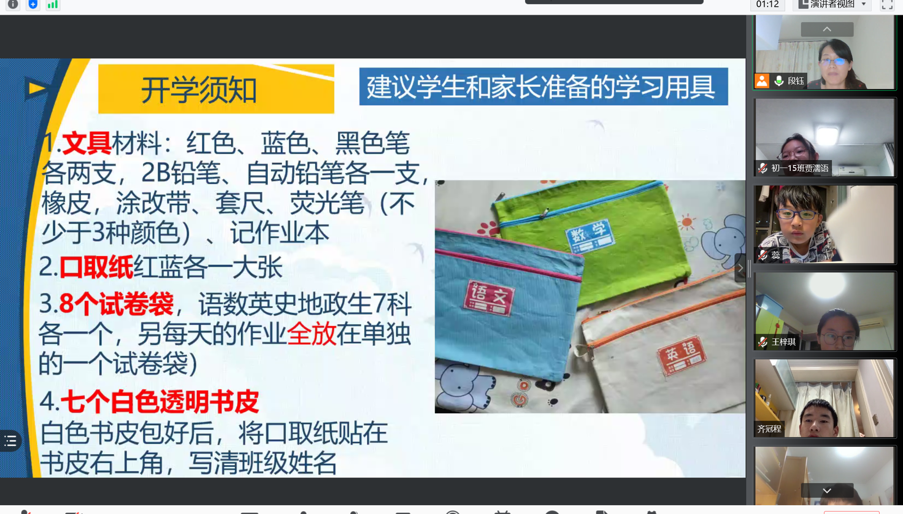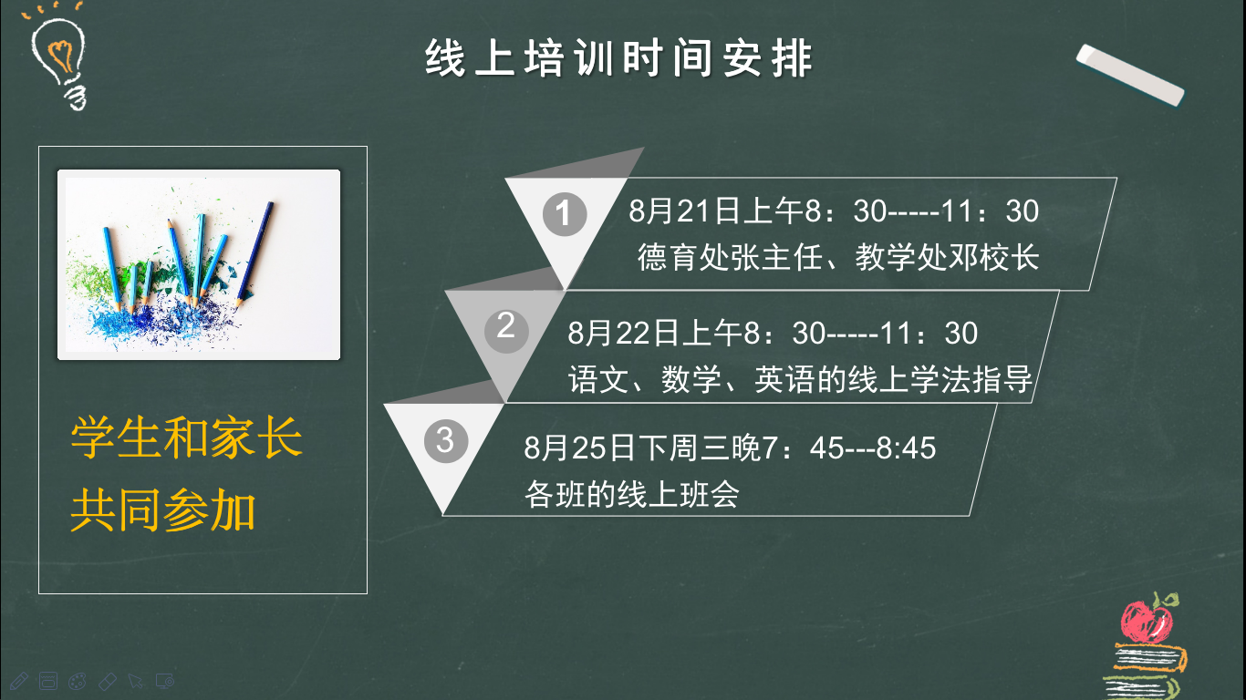为了保证入学教育的顺利开展,8月20日晚,各班召开主题为“初一入学教育”的班会。会上,班主任对假期情况进行总结,说明线上教育安排,提出期待与要求。
