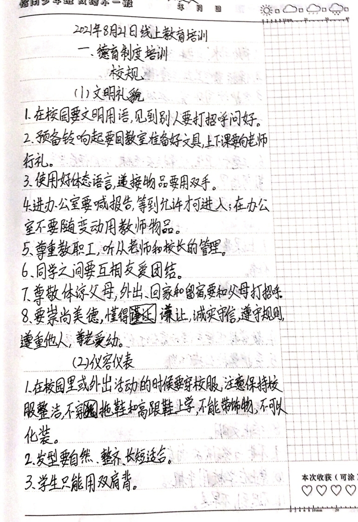 会后,各班同学就培训内容进行认真整理总结,交流心得体会。