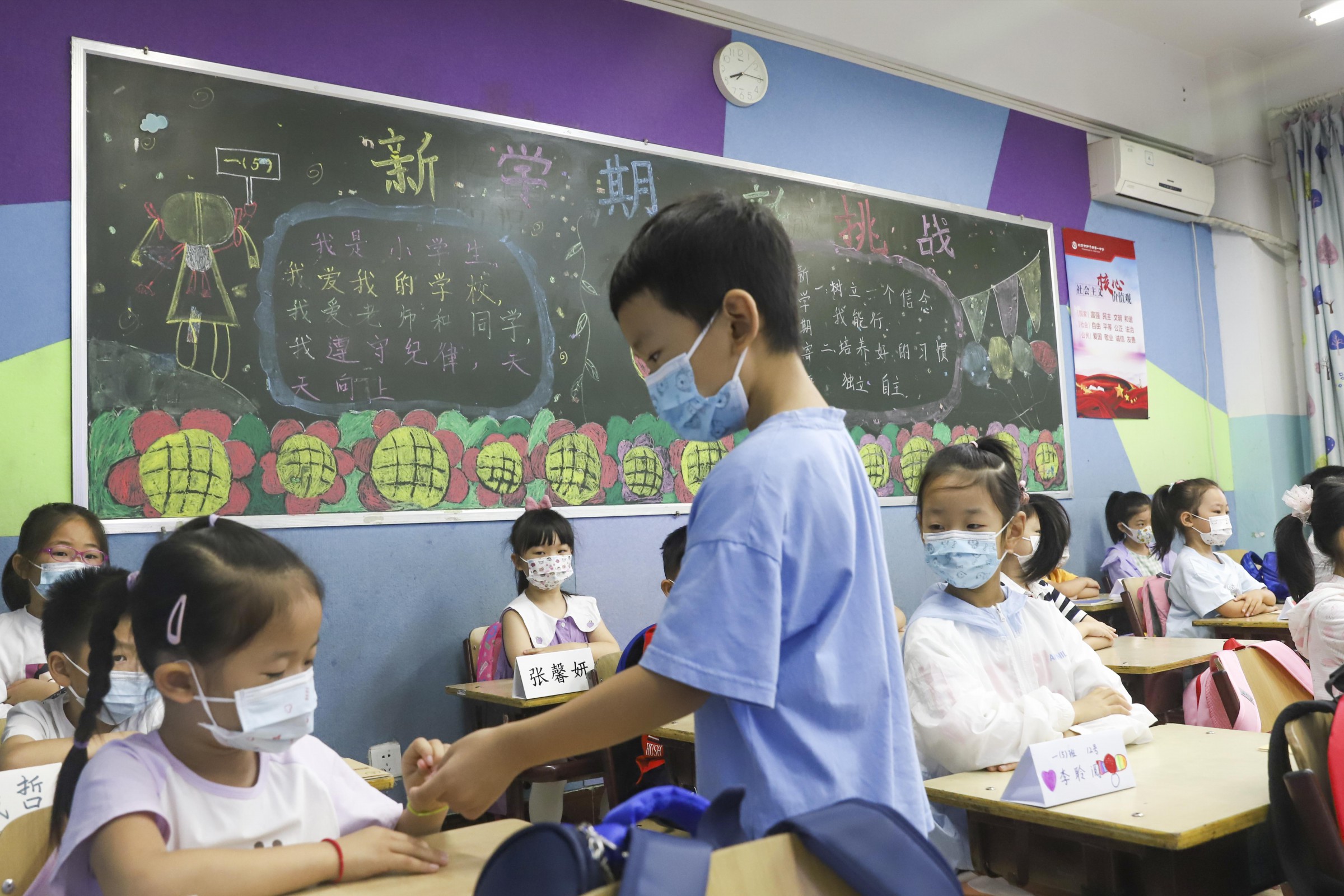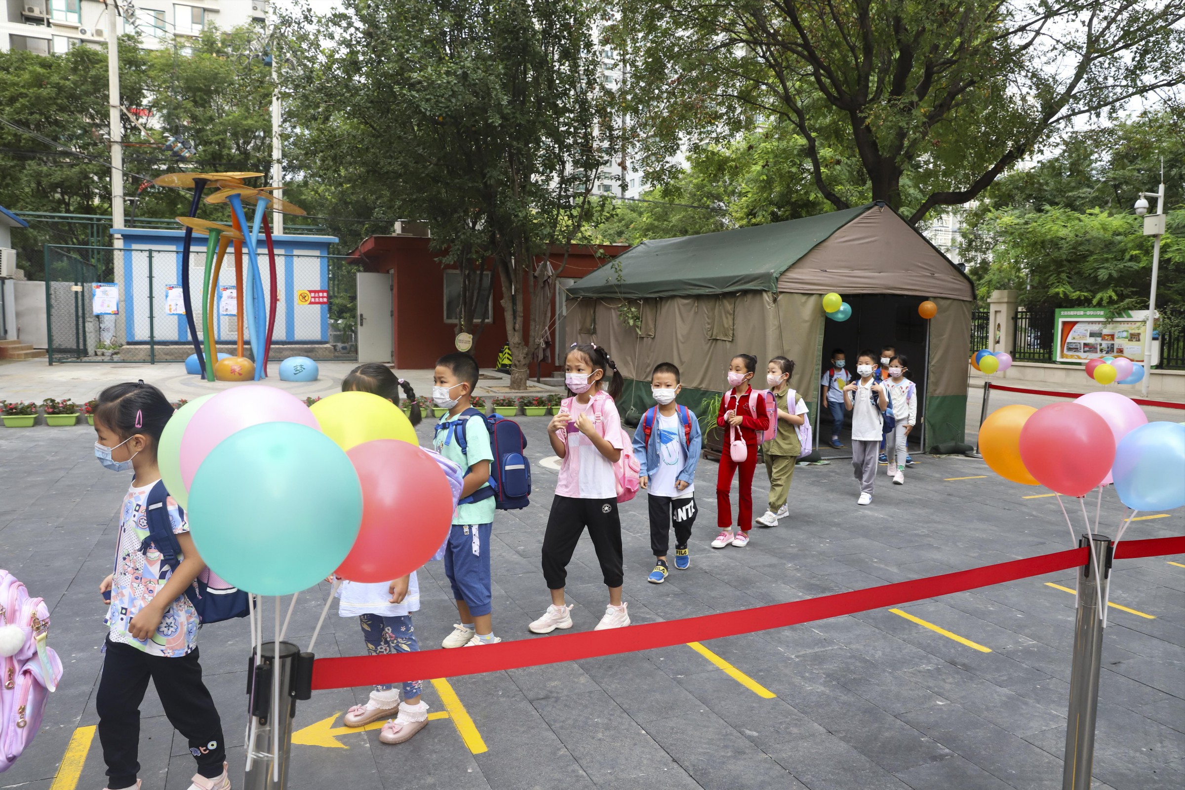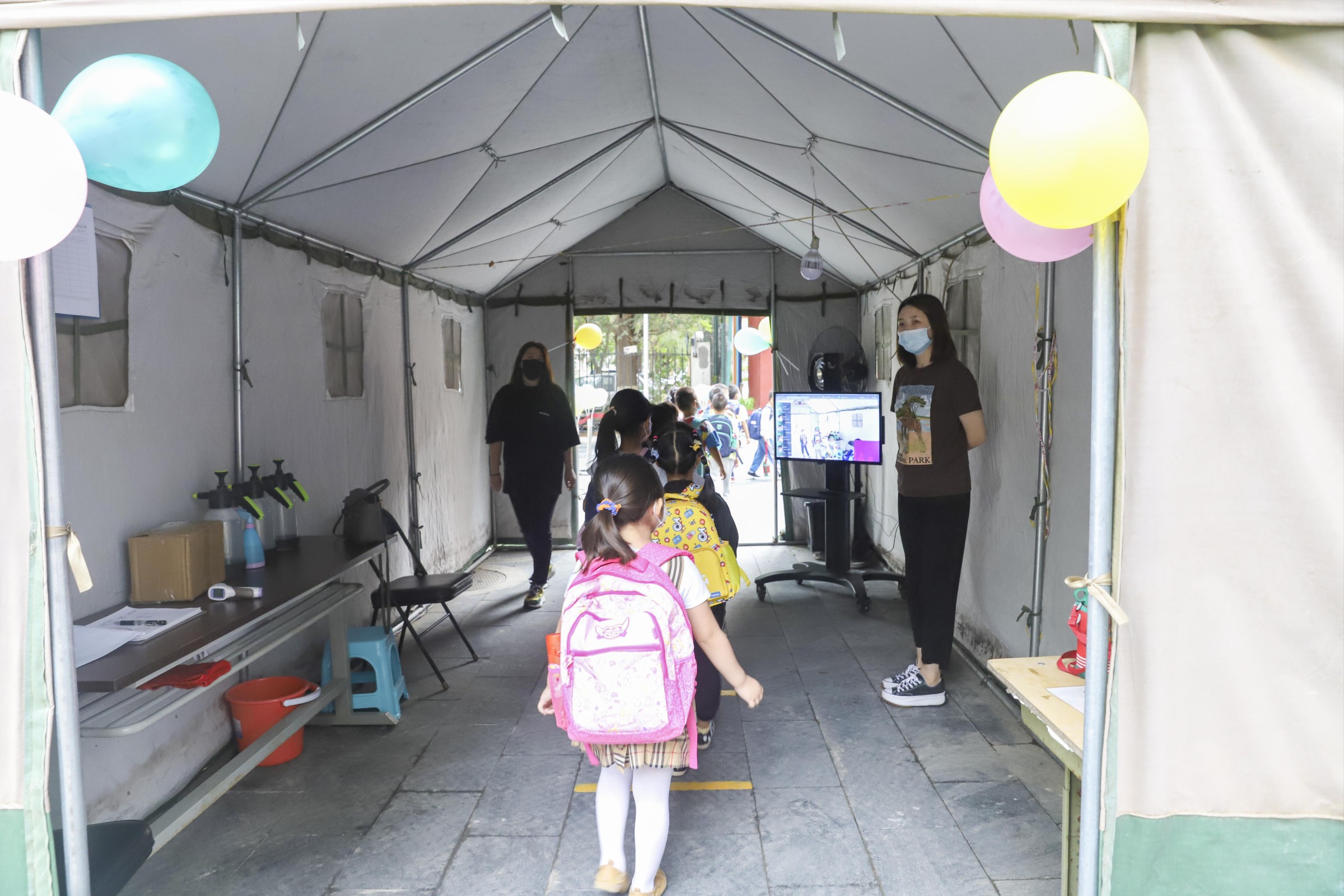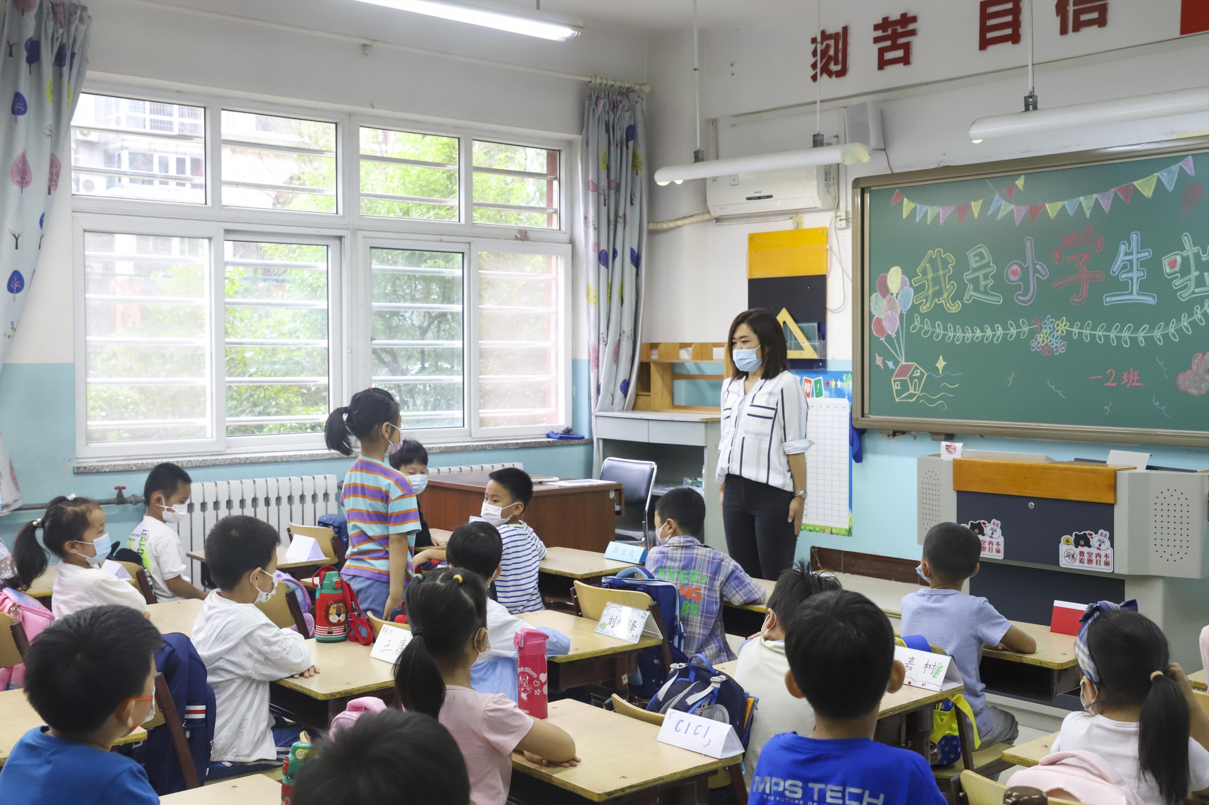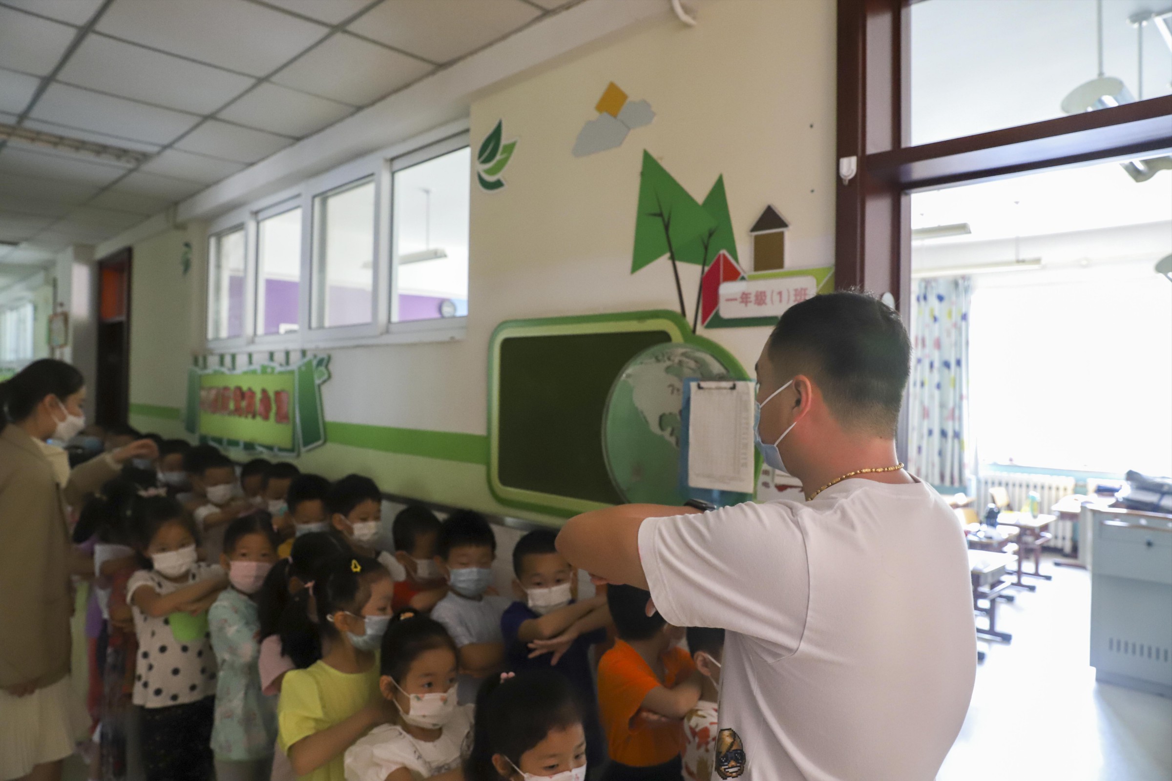 28日早上,校门口秩序井然,学校的领导及老师们早早站在门口,微笑着等待迎接小学生们的到来。踏着朝霞,小宝贝们满怀期待而来,经过防疫测温后,在老师们的引导下,这群带着稚气和理想的萌娃们陆续进入了班级。