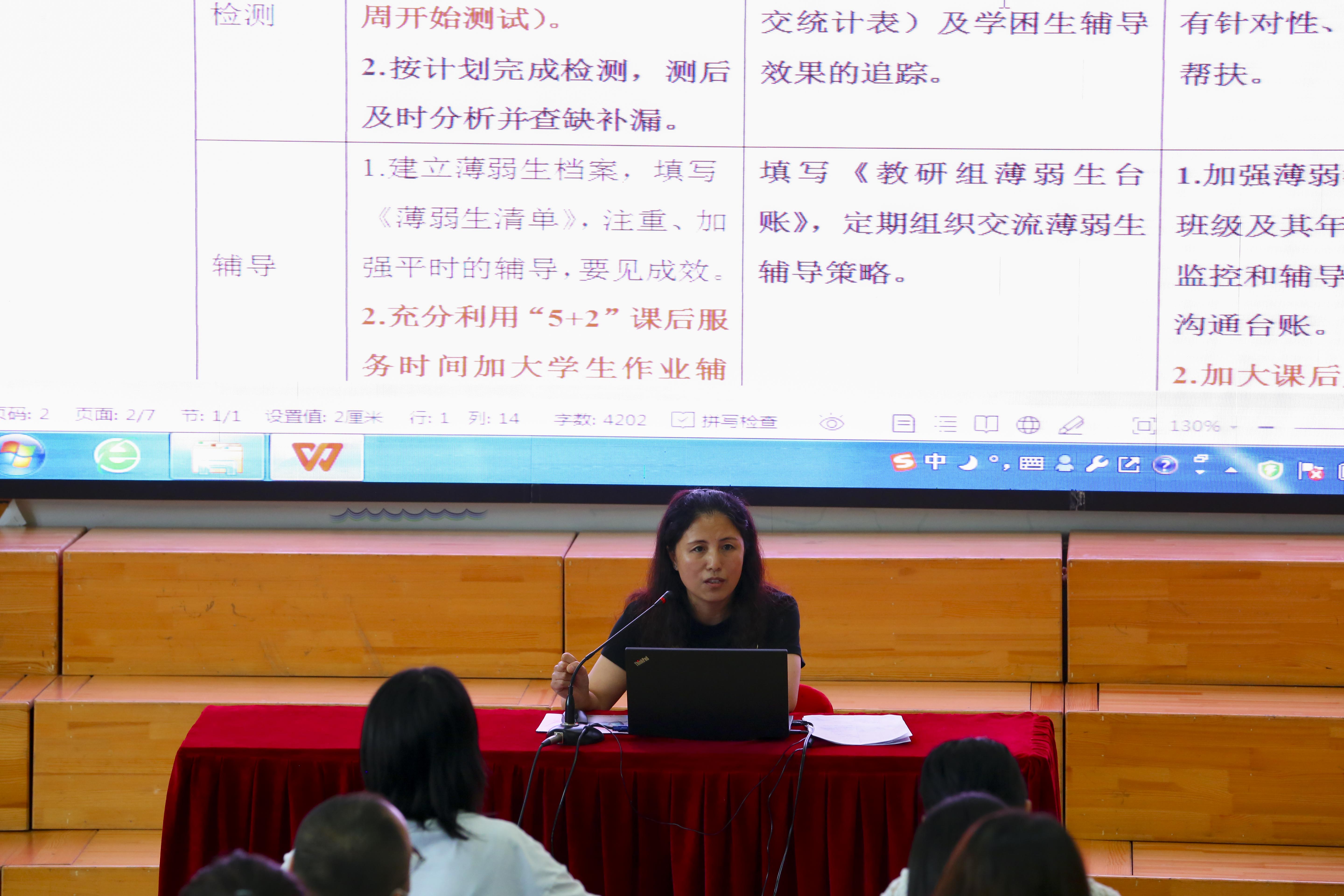校长助理陈立红先从“常规工作、重点工作、创新工作”三大方面解读了本学期小学部教学计划,强调了“四个以”:以“双减”为要求,教学整体规划,切实提高学校育人水平;以“目标”为导向,采用“五重”措施,实行“我的教学我负责”; 以“发展”为目标,唤醒成长内驱,夯实教师教学基本技能;以“活动”为载体丰富校园生活,促进学生综合素养提升。